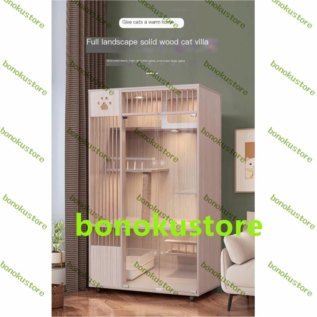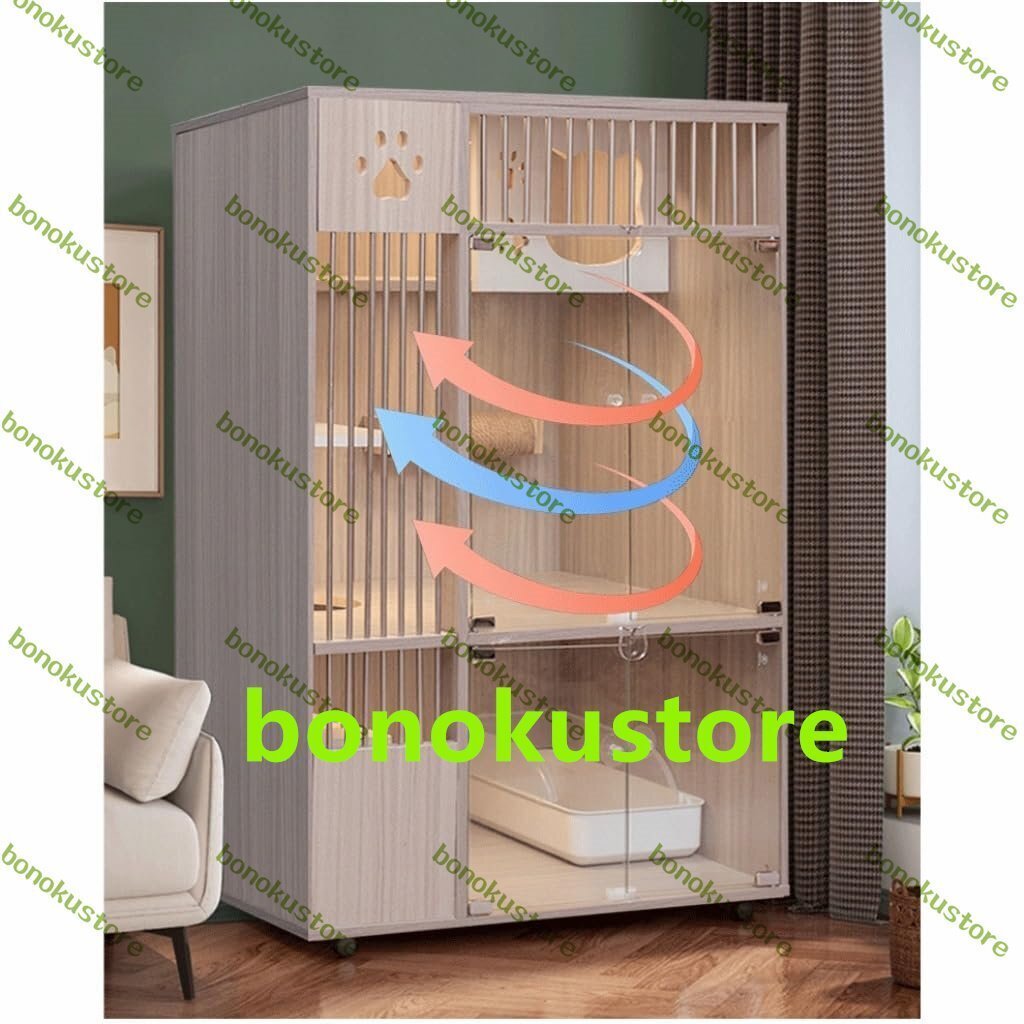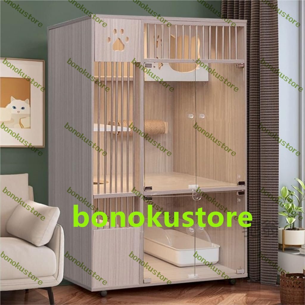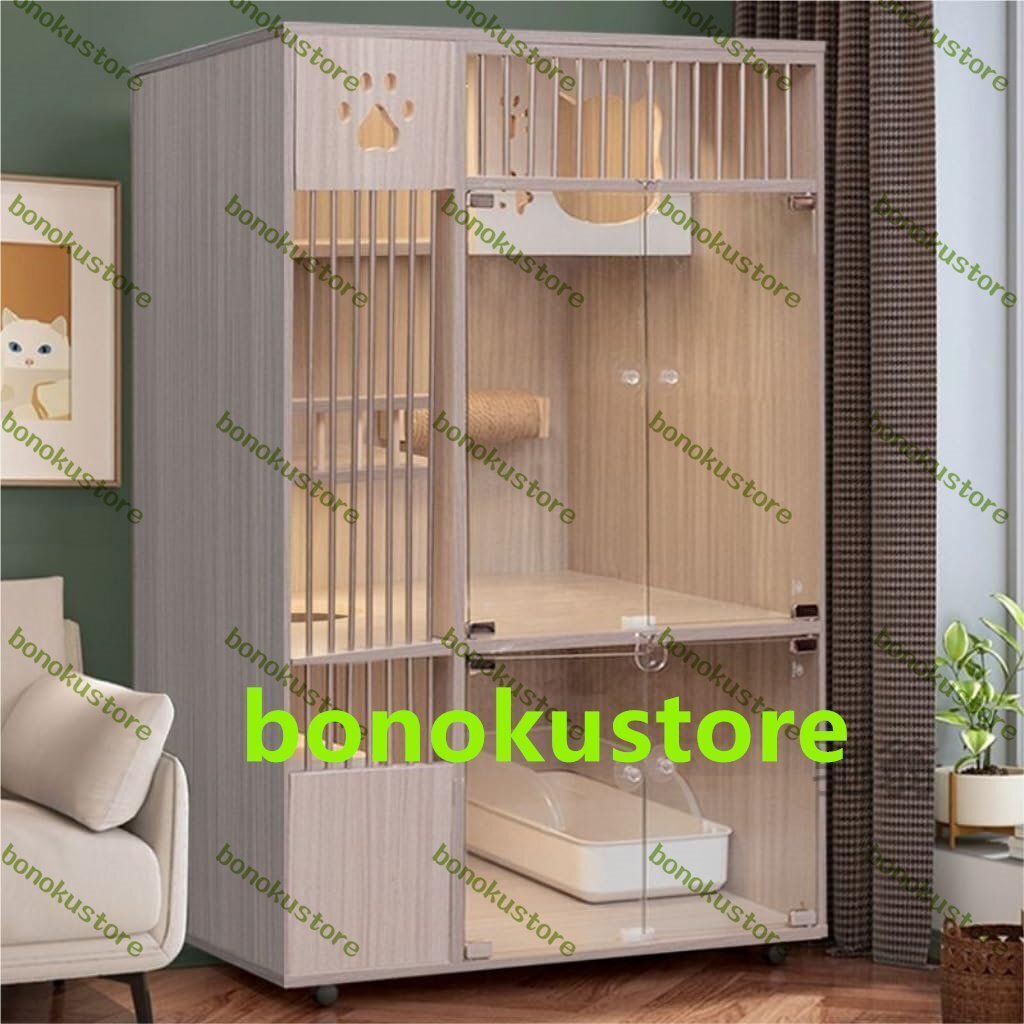 猫の家 無垢材の猫ケージ 猫の別荘 猫ケージ 木製 2階建てと3階建ての大型キャタリー 高級猫キャビネットディスプレイ 猫 家(B 90*60*150cm)
