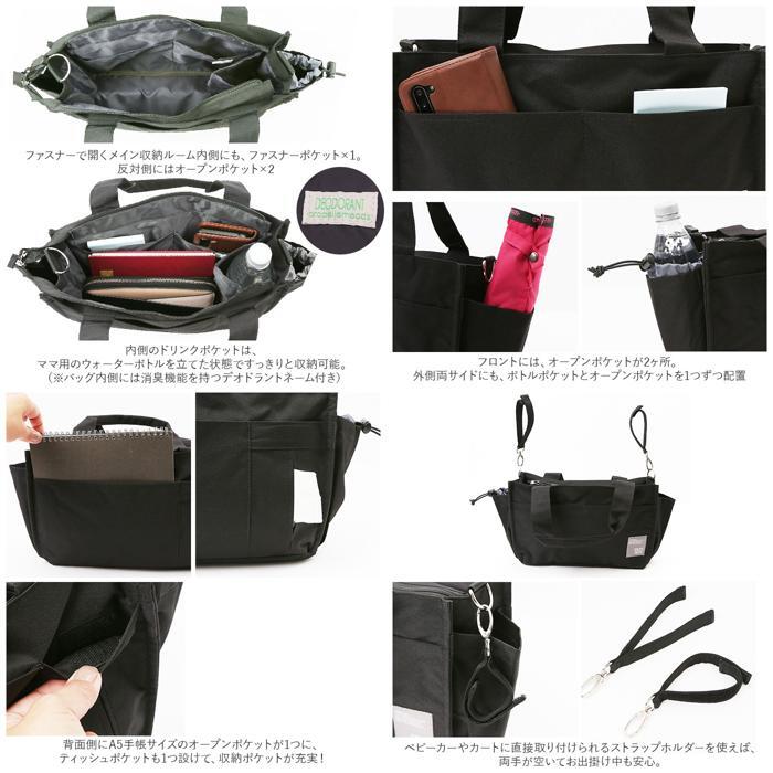| 商品説明 | ・・お散歩に必要なグッズをひとまとめ!「propeller heads-プロペラヘッズ-」から、OSAMPOはっ水ポリトートショルダーが新登場。 ・「OSAMPO BAG-お散歩バッグ-」は、小さなお子さまやペットとのお散歩のためにデザインされたコンパクトなバッグシリーズ。 ・フロントには、スマホなどママの小物がサッと取り出せるオープンポケットが2ヶ所。背面側にA5手帳サイズのオープンポケットが1つに、ティッシュポケットも1つ設けて、収納ポケットが充実! ・外側両サイドにも、巾着のように口がキュッと締まるボトルポケットとオープンポケットを1つずつ配置し、哺乳瓶や取っ手付きマグ、折りたたみ傘などの持ち歩きに便利なつくり。 ・ファスナーで開くメイン収納ルーム内側にも、貴重品の収納に便利なファスナーポケット×1。反対側のオープンポケット×2は、ウェットティッシュやガーゼなどベビーケア用品の整理にオススメ。 ・内側のドリンクポケットは、ママ用のウォーターボトルを立てた状態ですっきりと収納可能。(※バッグ内側には消臭機能を持つデオドラントネーム付き) ・ハンドルで手持ちのミニトートとして使えるのはもちろん、付属のショルダーベルトで肩掛けスタイルにもできる2WAY仕様。 ・ベビーカーやカートに直接取り付けられるストラップホルダーを使えば、両手が空いてお出掛け中も安心。 ・ペットとのお散歩の際は、付属のストラップホルダーにワンちゃんのリードをつないでもOK!(※主に小型犬のお散歩にご使用ください。力の強い大型犬のお散歩には適しません。) ・ベーシックなアースカラーの生地は、水滴を弾くはっ水加工済みなので、お散歩中の急な雨でも安心。 |
