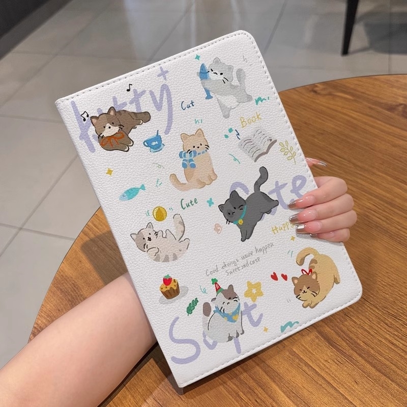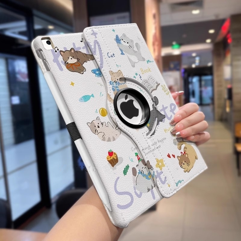 iPad 10.9インチ iPad10 ケース 第10世代 保護カバー 段階調整 360度回転 スタンドタイプ ペン入れ ハンドストラップ付き 超可愛い ねこ | |||