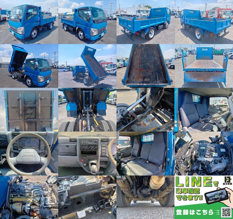 低床ダンプ 上物:極東開発製 荷台寸法:304×160×37 上物同年式 積載3t 4ナンバー 走行:11.2万km 5速ミッション 準中型(7.5t未満)免許対応車 排ガス適合(各都市乗り入れ&登録可) タイヤサイズ:205/70/17.5 車検付(R8/5/18) |
