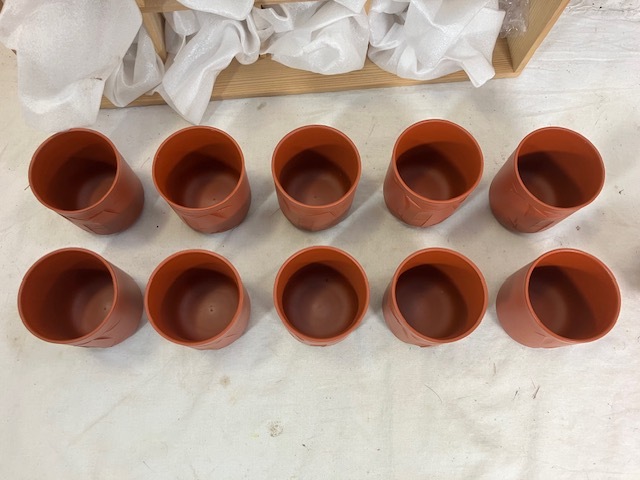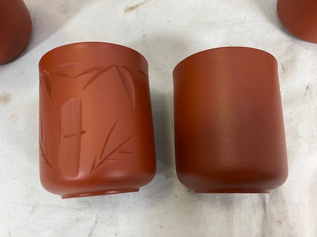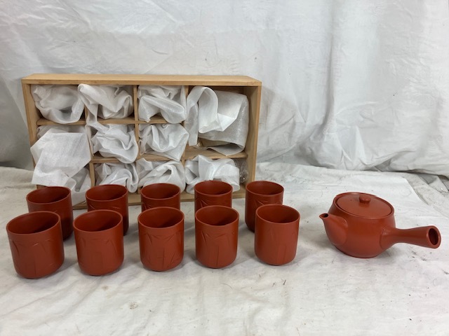ご覧いただきありがとうございます。 以下が商品説明となりますので、しっかり読んでいただき、ご理解された上でご入札ください。 タイトル:陶器製 茶器揃 急須 湯呑10客 セット 付属品:本体 「陶器製 茶器揃 急須 湯呑10客 セット」となります。未使用品ですが保存品のため汚れがございます。また、箱の蓋が欠品しておりますので窯元等がわからない状態となっております。急須、湯呑の横には竹の柄が入っております。赤土の焼物かと思われます。 急須は直径9.5×高さ7cm、湯呑は直径6×高さ7cmくらいの大きさです。 このような品をお探しの方はご利用ください。 商品状態は画像で確認して下さい。 画像で確認できない、傷・汚れ・ラベルハガレ等がある場合が御座います。 |