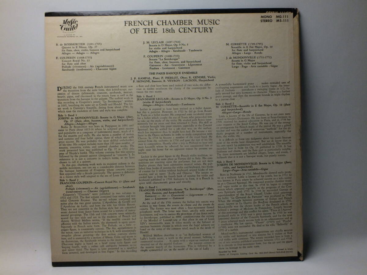 | MS 111 THE PARIS BAROQUE ENSEMBLE FRENCH CHAMBER MUSIC クープラン コレット モンドンヴィル LP【8商品以上同梱で送料無料】2508 | |||||