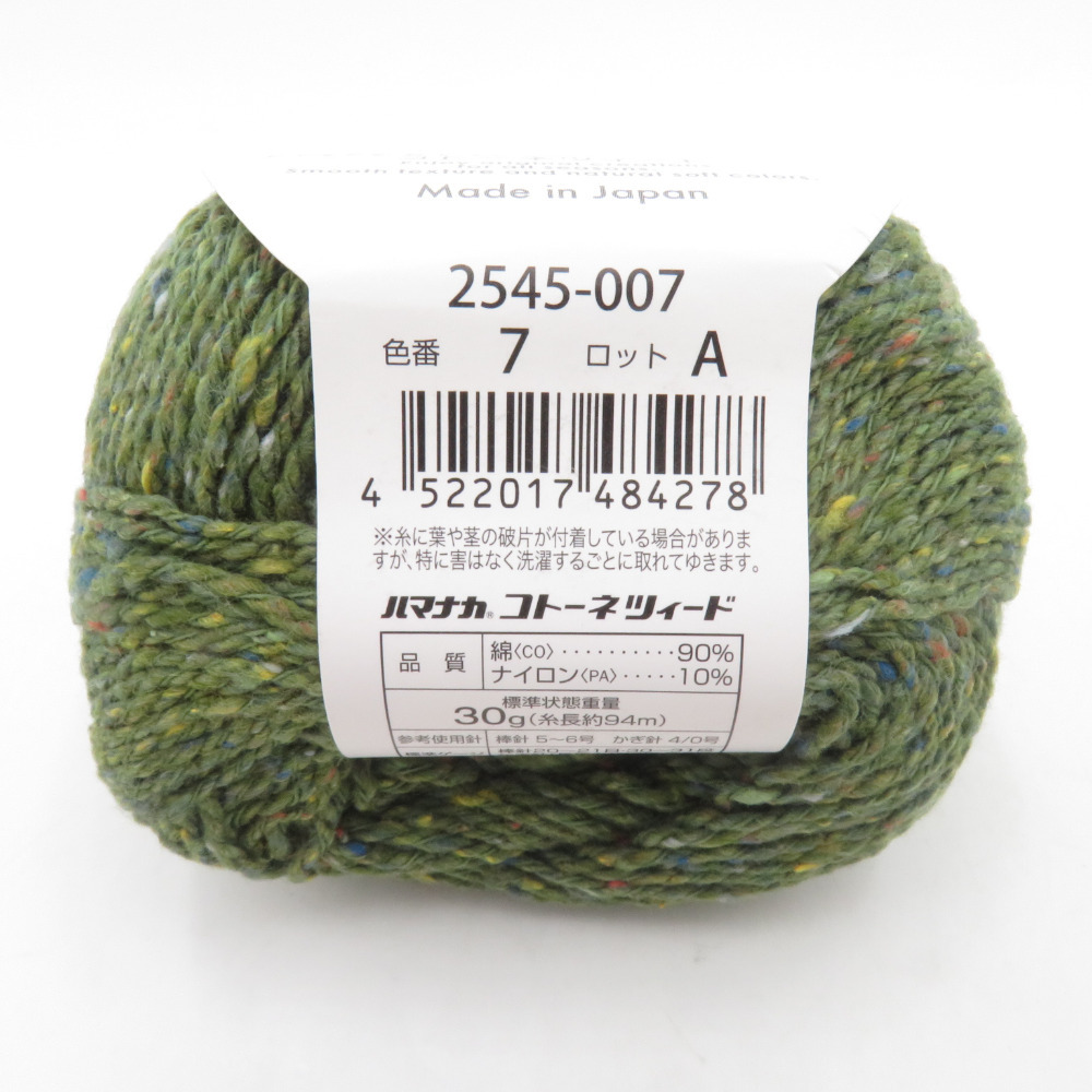 | ハマナカ 毛糸 コトーネツィード 5玉 7番色 グリーン 1玉30g巻 約94m コットン 日本製 並太 春夏毛糸 未使用品 |