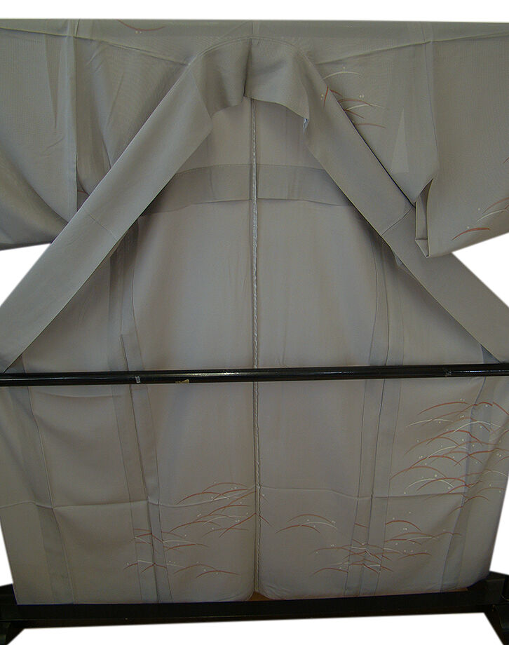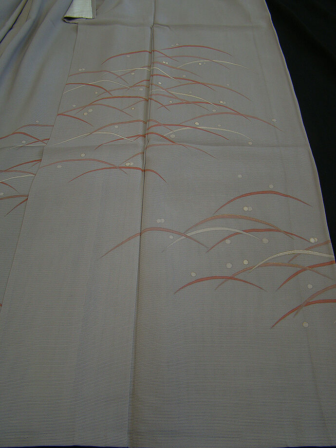 | 商品説明 | こちらのお品は夏物でございますので、7月~8月にお召頂ければと思います。 絽と言えば、紗と双璧を成す夏のお着物の生地で、その最大の魅力は絶妙の透かし加減です。 清涼感溢れる地の風を通すしなやかさは、夏に着物を着るという贅沢を 快適に楽しませてくれることでしょう。 着物には、大きく分けて「袷(あわせ)の着物」と「単衣(ひとえ)の着物」と「夏着物」があります。 反物(表地)を着物に仕立てるときに、裏地類をつけるものを袷の着物、 つけないものを単衣の着物と呼び、胴裏や八掛といった裏地がつかない一枚ものの着物です。 また裏地がないため、座る時などにヒップのラインが目立たないよう、 居敷当て(いしきあて)の生地をつけることもあります。 居敷当ては付いておりません。 とてもしなやかなさらっとした肌触り良い滑らかな上質な「駒絽」の生地、 落ち着きある渋い霞色地につゆ草柄の染柄が洒落感に満ち趣深い着物姿を演出しております、 また、背に「違い鷹の羽」の刺繍紋1ヶ入っております、 着る人や見る人を清涼感に包み、女性の凛とした美しさを醸す様な、 洗練された印象を身に着けるお着物に仕上がっております。 |