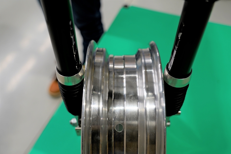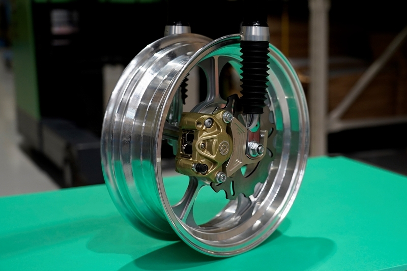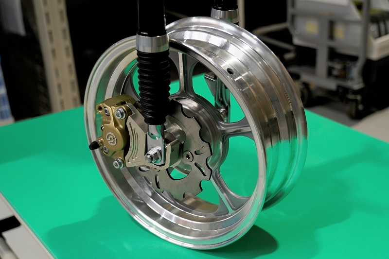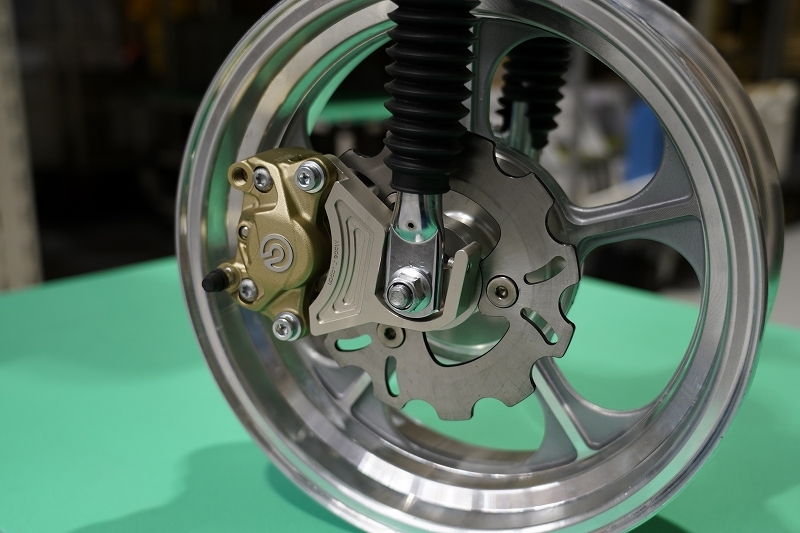 左右フロントフォークを差し替えることでカニブレンボを使用した4.0J化が可能です。