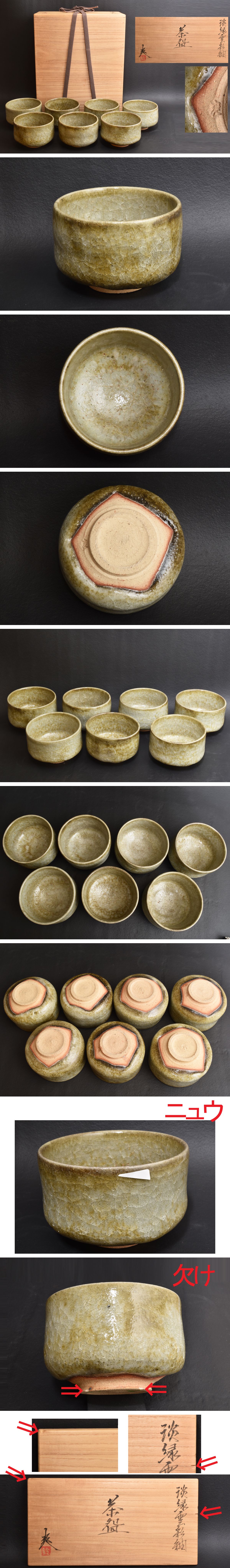 5960 鈴木爽司 淡緑雲彩釉 数茶碗7客(2客にキズ)共箱  [浏览原始页面]