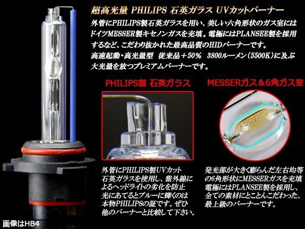 35W 超高光量 PHILIPS 石英ガラス UVカット HIDバーナー 高起動・高光量型 従来品+50% 3800ルーメン(5500K)に及ぶ大光量を放つプレミアムバーナーです。 バーナーの性能をフルに発揮する高性能バラストをセットにした HIDキットも販売中です。 HIDキットは⇒ こちら 同シリーズのHIDバーナーは⇒ こちら |