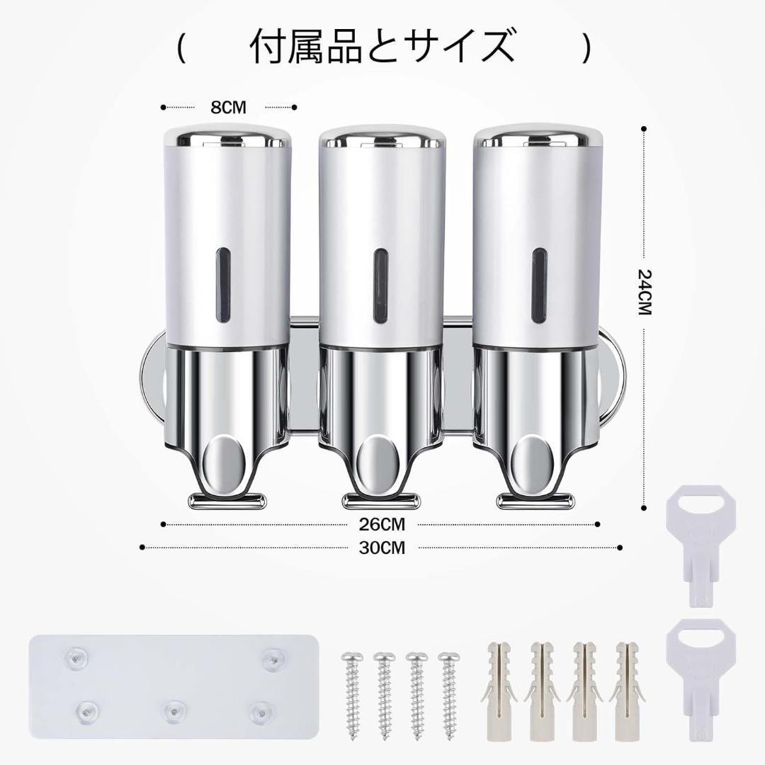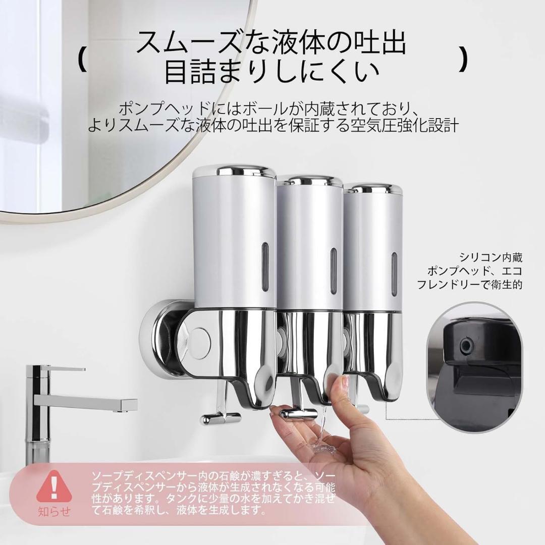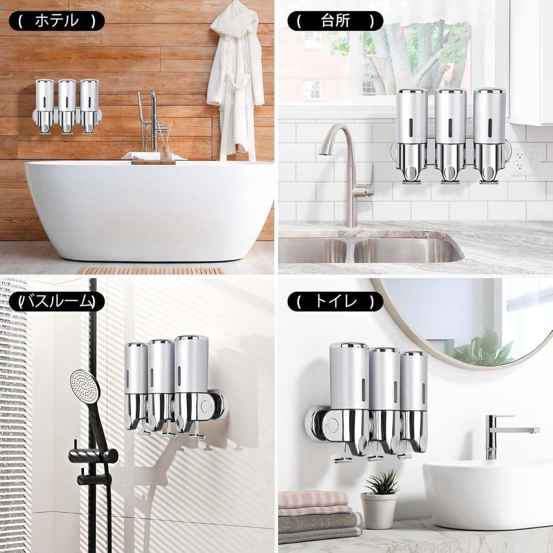 近未来感3室壁掛け式 シャンプー コンディショナー ディスペンサー ソープ