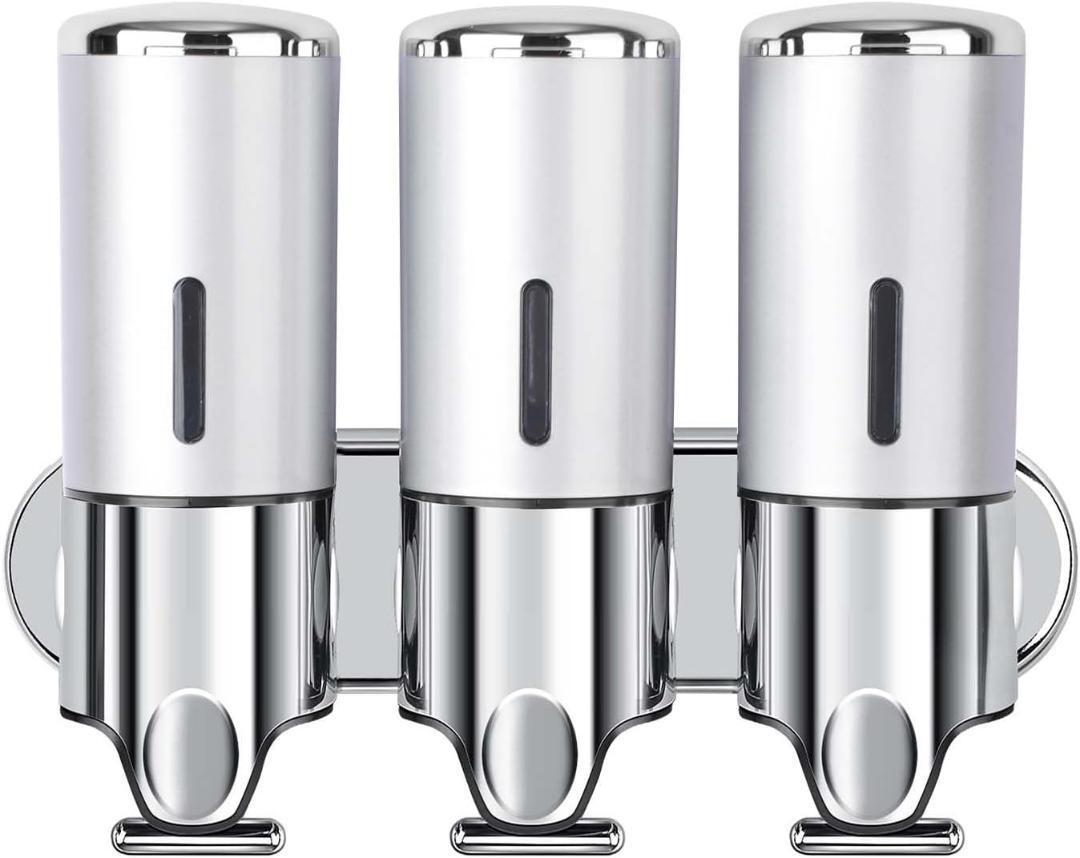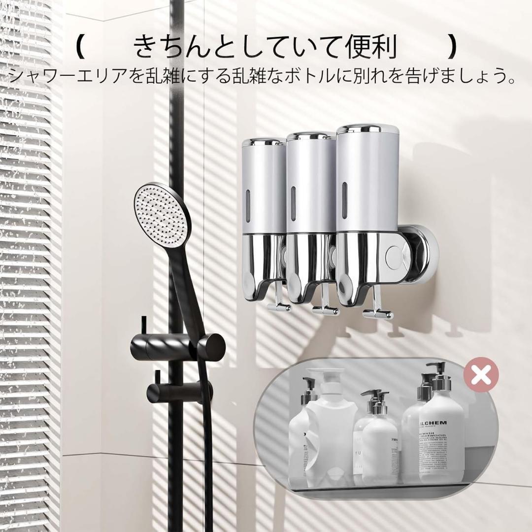 3室デザイン**: シャンプー、コンディショナー、ボディソープを個別のチャンバーに収納し、シャワーエリアを整理整頓。バスルームをすっきりと保ちます。