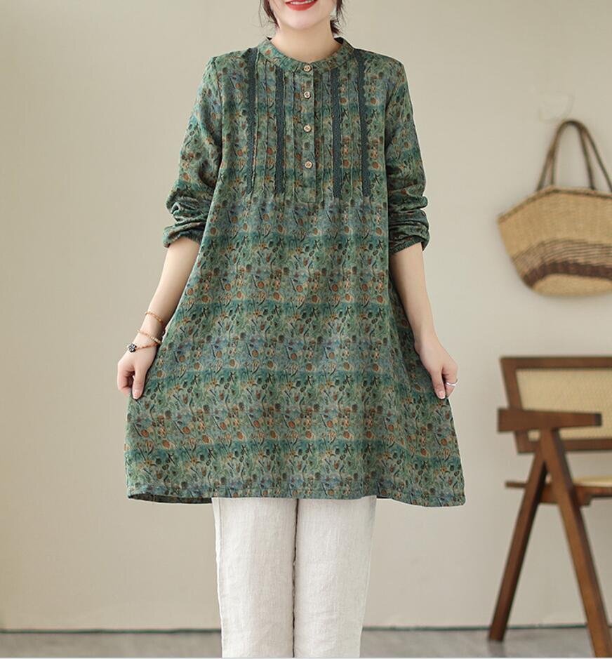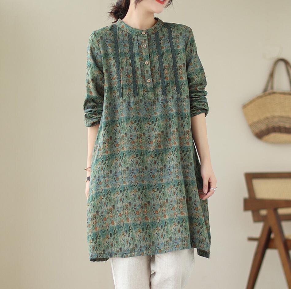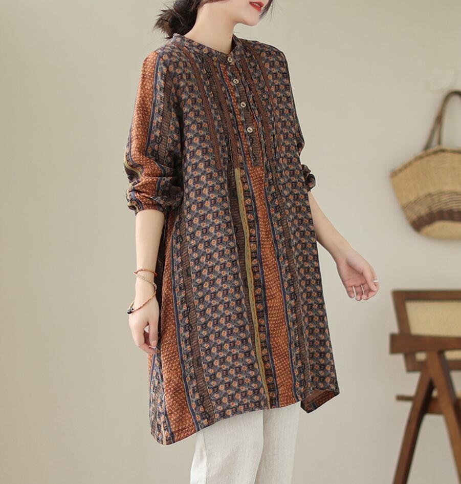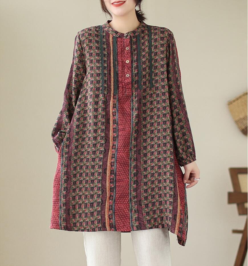 春夏 チュニック トップス レディース 綿麻 ロング 長袖 プリント 大きい ゆったり 体型カバー★レッド/2XLサイズ [浏览原始页面]