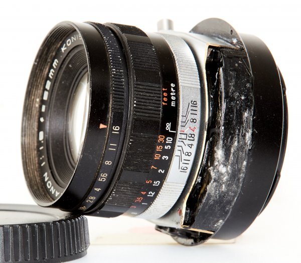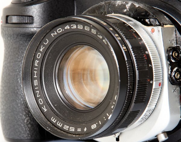 付属のレンズは「 HEXANON 1:1.8 f=52mm KONISHIROKU」(5枚絞り羽1.8-16)です。