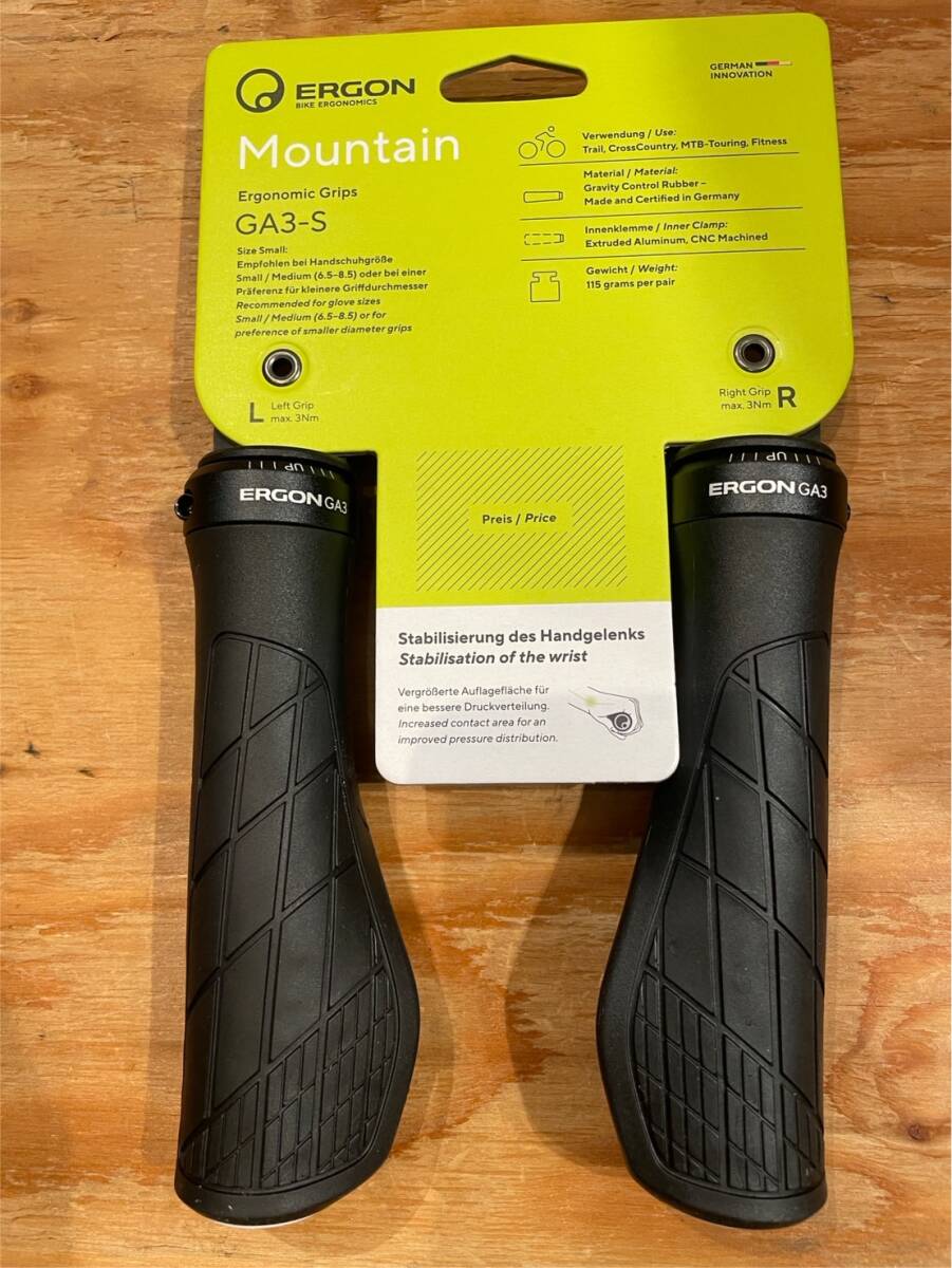 手首の負担を軽減する形状のMTB 向けグリップ、「GA3」。