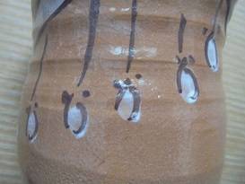 水指です。大変面白い図柄で、灯明・吊灯篭でしょうか。レトロ品ですがキズ、ヨゴレはありません。径13㎝、高さ13.5㎝程度あります。