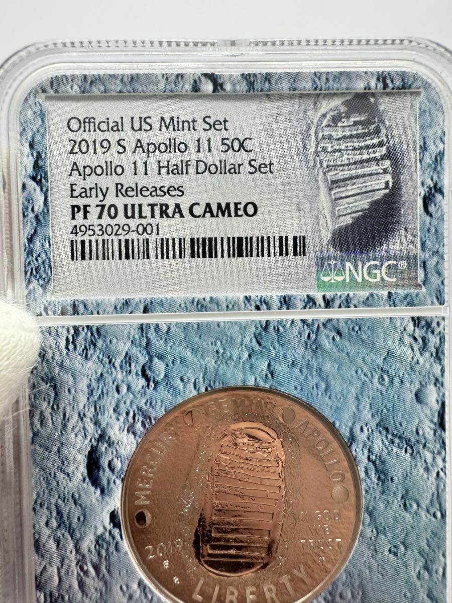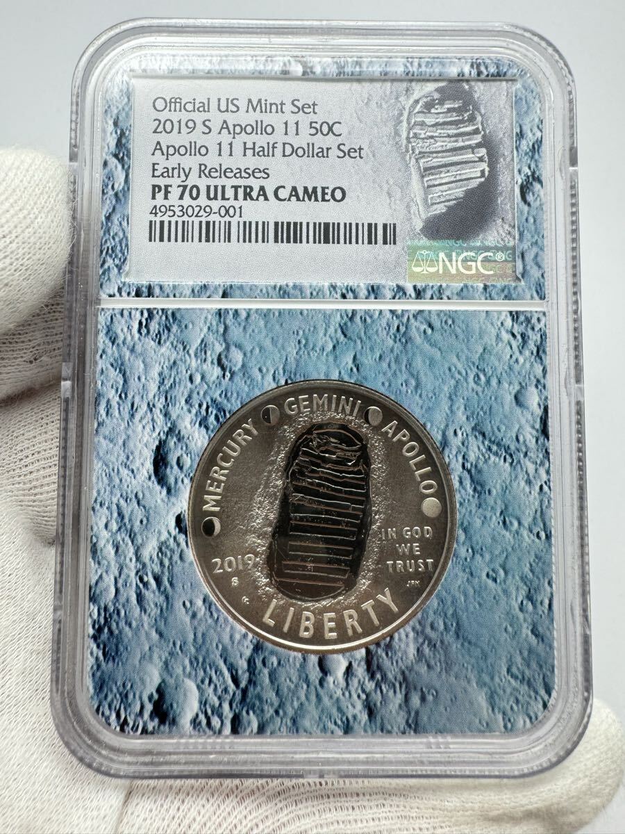 アメリカ造幣局(U.S. Mint)が2019年に発行した、アポロ11号月面着陸50周年を記念する公式ハーフダラー(1/2ドル)銀貨です。| 出价者 | 信用 | 价格 | 时间 |