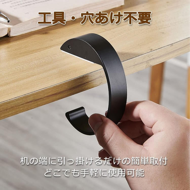 ◆テーブルフック 2個セット バックハンガー 耐荷重10kg 滑り止めパッド付き 穴あけ不要 取付簡単 テーブルハンガー バッグホルダー カバン掛け 持ち運び便利 選べるデザイン カラー【5型ブラック2個】TF5C02S