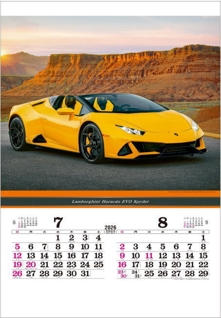 | 商品説明 | 憧れのスポーツカーカレンダーです。 迫力の特大サイズです。 写真部分がフィルム素材になっていて、紙ににはない美しい発色です。 お部屋のインテリアやプレゼントにおすすめの豪華な作品です。 表紙には年間カレンダー付なので1年間ポスターカレンダーとしてお使いいただけます。 ●スーパースポーツカー フィルムカレンダー 【商品詳細】 ・サイズ:74.2×50.4cm ・用紙:アート紙、上質紙、フィルム ・仕様:7枚 ・掲載暦情報 「令和・平成・昭和」の元号/ 前後月 /六曜 / 二十四節気 / 雑節 / 旧暦 / 三りんぼう |