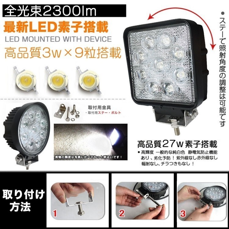 | LEDチップ | 高品質SMD3w×9個 | 定格電圧 | DC12V/24V (動作電圧範囲:DC 10V-30V) |