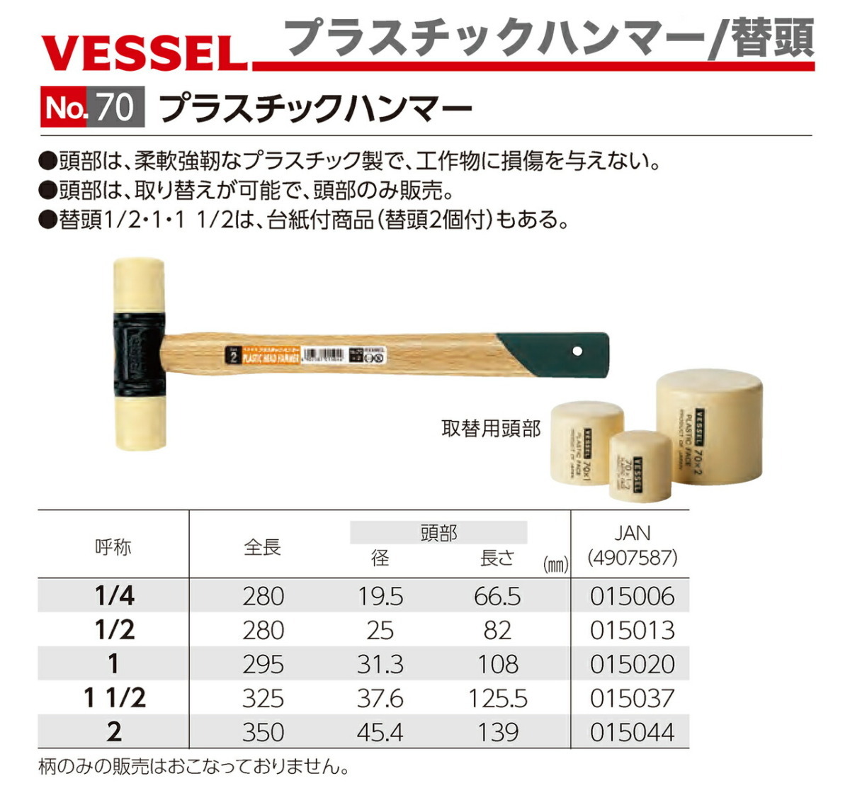 【オススメ】〈ベッセル〉プラスチックハンマー替頭 No.70 1/4A| 出价者 | 信用 | 价格 | 时间 |