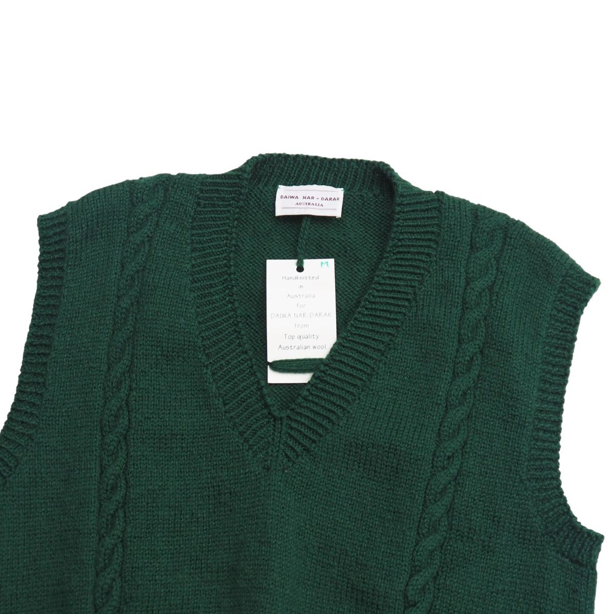 | TI8830+未使用*DAIWA NAR-DARAK AUSTRALIA*メンズM*モヘヤウール*ニットベスト*Vネック*ケーブル編み*無地*グリーン系 | |||