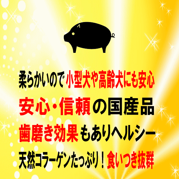| ・天然素材を使用している為、形・大きさ・色合いには多少のばらつきがあります。 ・まれに豚の毛が入っておりますが、品質上問題ございません。 ・生後4ヶ月未満の幼犬には与えないで下さい。 ・ワンちゃんに与える時は、のどに詰らせる事がありますので、十分に注意して下さい。 ・開封後は保存状態によって変色、カビ等が発生する事がありますのでお早めにお与え下さい ・乳児・子供の手の届かない所に保管し、子供が与える時は、大人が監視して下さい。 ・本品はペット用スナックです。ペット以外には与えない様にお願い致します。 また、大変おいしくできております。与え過ぎに注意して下さい。 ・北海道・沖縄・離島の場合は一部送料のご負担をお願い致します。 ・他のサイトでも同商品の販売をしているのでご購入頂いたにも関わらず欠品中になる場合がございますのでご了承ください。 |