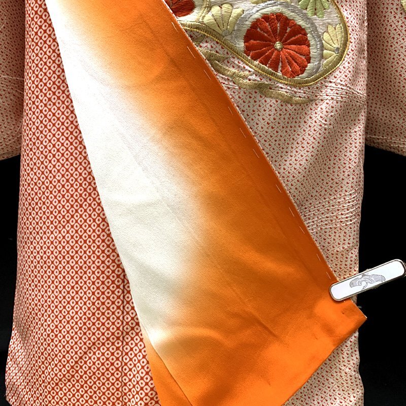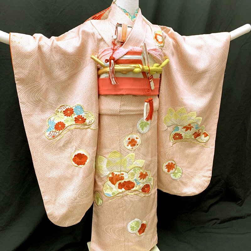 | □七五三 七歳 女児 着物&袋帯 総刺繍 松 丸文 オフホワイト□ (No.gd) *こちらの商品は、お着物&帯のみです。流水地紋入りのオフホワイト地に、柔らかい色合いの総刺繍の松や丸文様が豪華で可愛らしい7歳七五三のお着物と袋帯のセットです(その他半衿、付け衿はセットに含まれません。)比翼付き 袴と合わせてハーフ成人式や小学校の卒業式にもご利用いただけます。 お小物類(帯揚げ、帯締め、新品のしごき)は別途4500円、また追加で筥迫と末広は+3000円頂戴します。 (着物)※9枚目の画像が実物に一番近いお色です。左右内袖の矢印部分にシミがございますが、遠目から見たらあまり目立ちません。また、左後後身頃の裾から27㎝辺りにうっすら変色がございますが近くでよく見ないと分からない程度です。 (長襦袢)こちらには長襦袢が付属いたしません。代わりにお子様の負担が少なく、便利な子ども用楽々衿をお勧めします。#ag楽々衿 (帯)未仕立て品です。手先にうっすら青っぽい跡、垂れ先や帯の所々にうっすらアクのようなものがございますが近くで見ないと分からない程度です。また、帯裏に黒っぽいシミのようなものがいくつかございますが着用時見えません。 【表地素材】(着物)正絹、(帯)正絹 【色】オフホワイト系 *モニターによって色味は実際と異なる場合がございます。 【サイズ】(着物) 裄:48cm、肩上げ:5cm、袖幅:32cm、袖丈:71.5cm、丈(肩から):135cm、腰上げ:0cm、前幅:20cm、後幅:25.5cm (帯) 幅:25.2cm、長さ:390cm *素人採寸のため、多少の誤差はご容赦ください。 お求め安い価格での出品ですので、いかがでしょうか? | |