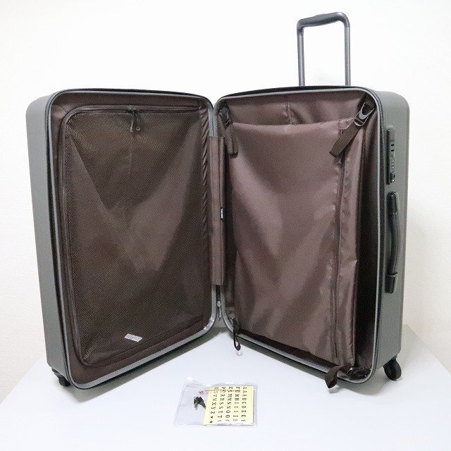 商品の製造過程や保管時にできた細かな傷や目立たない汚れがある可能性がございます。 ご使用に際しては問題ございません。気になる方は入札をお控えください。 アウトレット品にご理解を頂ける方の入札をお待ちしております。 進化を遂げた軽量ボディ。 心も足取りも軽くするスーツケース 驚きの軽さと快適性をぜひ体感して下さい。 ![]() ![]() ![]() ■TSAロック付シフレロック アメリカ方面への旅行に便利なTSAロックシリンダー錠を搭載。空港の荷物検査の際鍵をかけたまま荷物を預けることができます。 シフレロックシステムでダイヤルロックと鍵のどちらでも施解錠が可能♪ ■ポリウレタングリップ 持ち上げた際の握り心地がよく、長時間持っていても手が痛くなりにくいポリウレタングリップを採用。旅行時は階段の上り下りや、預け入れ荷物の受け取り時など、意外とケースを持ち上げる機会は多いもの。何気ないところにも快適性を追求した仕様です。 ■段階調節キャリーバー 段階調節が可能なキャリーバーを搭載。シーンやお好みに合わせて引きやすい高さに合わせられます。※高さの調節は始めに一番上までバーを出し、下げながら調節して下さい※(混雑時の走行は危険な場合がございますのでご注意下さい) ![]() ~ 超軽量 静音キャスター搭載 66cm~ ■カラー■マットグレー ■サイズ■約H66(71)×W48(51)×D31(32)cm ( )はキャスター・取っ手込み総外寸 ■重量■約3.6kg ■容量■約105L(約7泊-長期旅行向き) ■キャスター■静音キャスター(日乃本錠前社製) ■素材■ポリカーボネート ■メーカー■siffler(株式会社シフレ) ■通常価格■33,000円(税込) ■状態■未使用 アウトレット 目立った傷や汚れはありません |