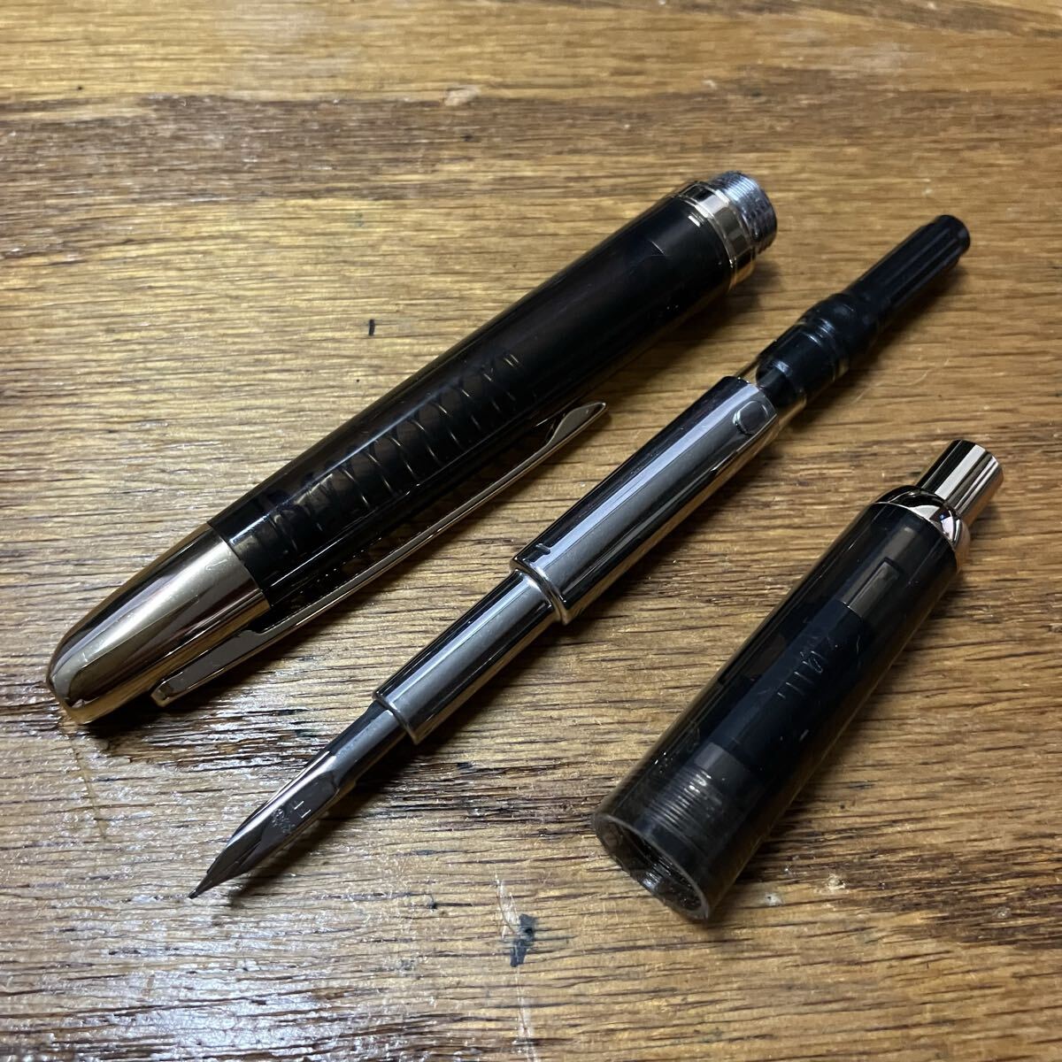 スモーク半透明のボディにゴールドトリムのノック式万年筆です。| 出价者 | 信用 | 价格 | 时间 |