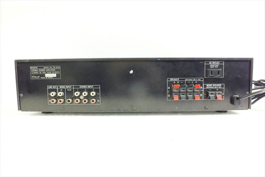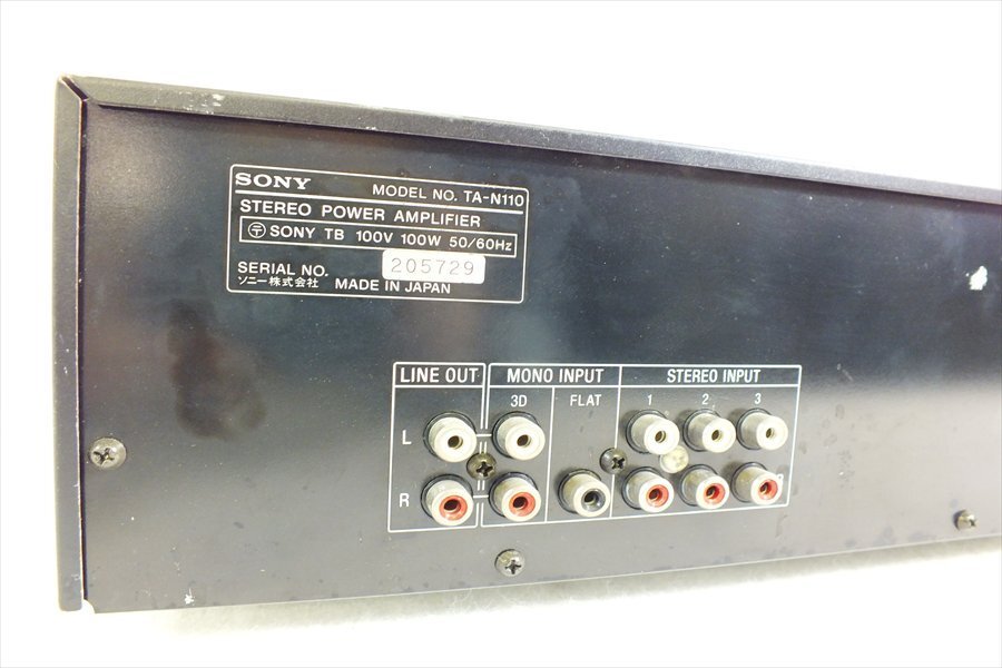 | ◆商品◆ メーカー---------SONY ソニー 型式-------------TA-N110 付属品-----------画像に写っているものがすべてになります。 ◆外装ランク◆ 【 D 】 ◆状態◆ 中古品の為キズや汚れなどの使用感はご容赦ください。 1 背面のステレオインプット端子、2以外通電しません 外装に傷汚れ有り 通電します 天板に凹み箇所有り 現状品での出品となります。 調整やメンテナンスが必要となります。 【重要】配送送料と送料に送料が0円と表示される場合がございますが、出品画面に記載の送料が落札後にご精算されます。 | |||||||||||||||||