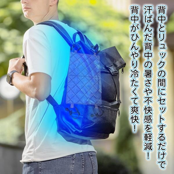 背中とリュックの間にセットするだけで汗ばんだ背中の暑さや不快感を軽減!