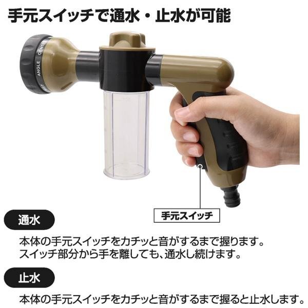 ※本製品は泡だけを出す製品ではありません。タンクに入れた洗剤と水道からの水が混ざって出てきて、噴射した場所が泡立つ仕組みになっています。