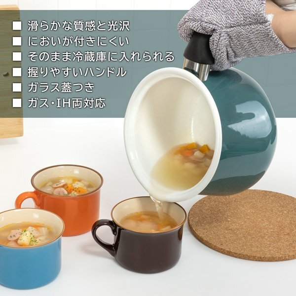 ホーローならではの光沢のある滑らかな質感と、美しい色合いが楽しめます。