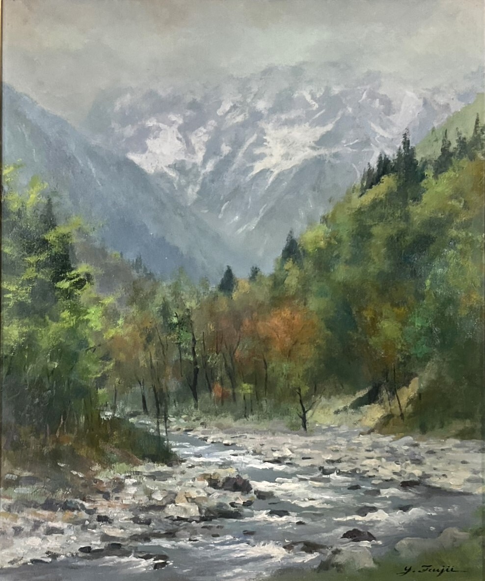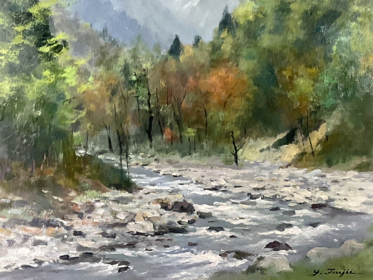 模写■油彩■作者不詳・Y.Fujii■『渓流風景』■20号■細密に描かれた逸品■額付絵画■11c の出品となります。