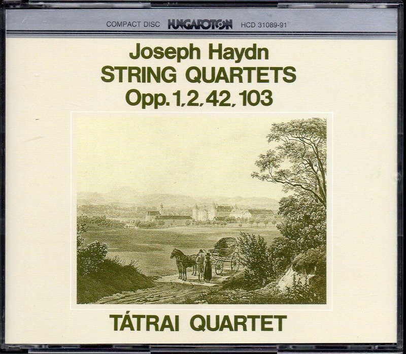 ー1960年代から開始された、ハンガリーのタートライQによるハイドン:弦楽四重奏曲全曲録音のひとつ。ロシアや東欧は録音データを公表しない傾向があり、録音年は明確ではありませんが、これが初のディジタル録音。残り Op.9 の6曲を録音し、全曲を完成させたと思われます。なお国内盤では1999年 キングインターナショナルから輸入盤を使った国内仕様盤として全集が発売されました (23枚組)。-当アルバムももとは1990年に国内仕様盤 HCD301~3 として発売されたもので、四ツ折の日本語解説書が附いています (縦直線状のシワあり)。