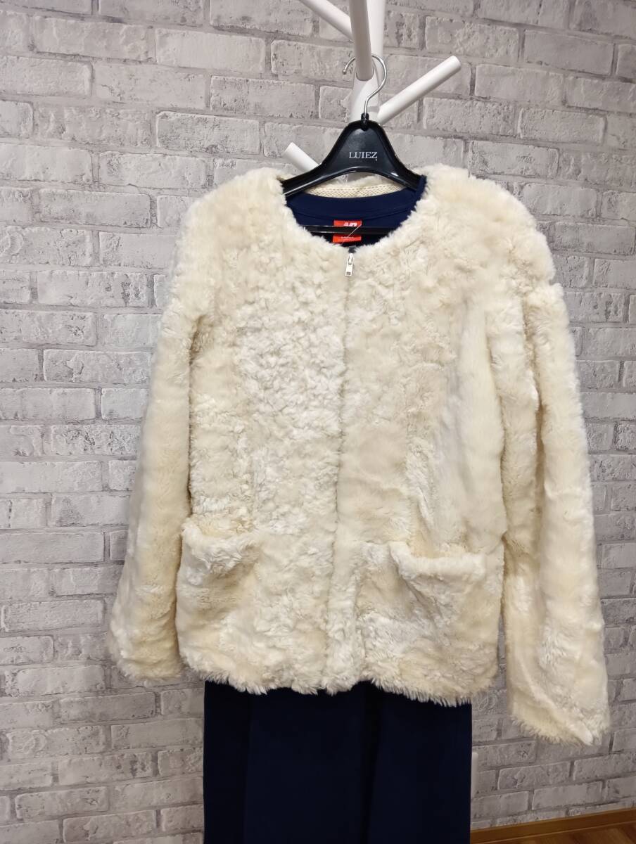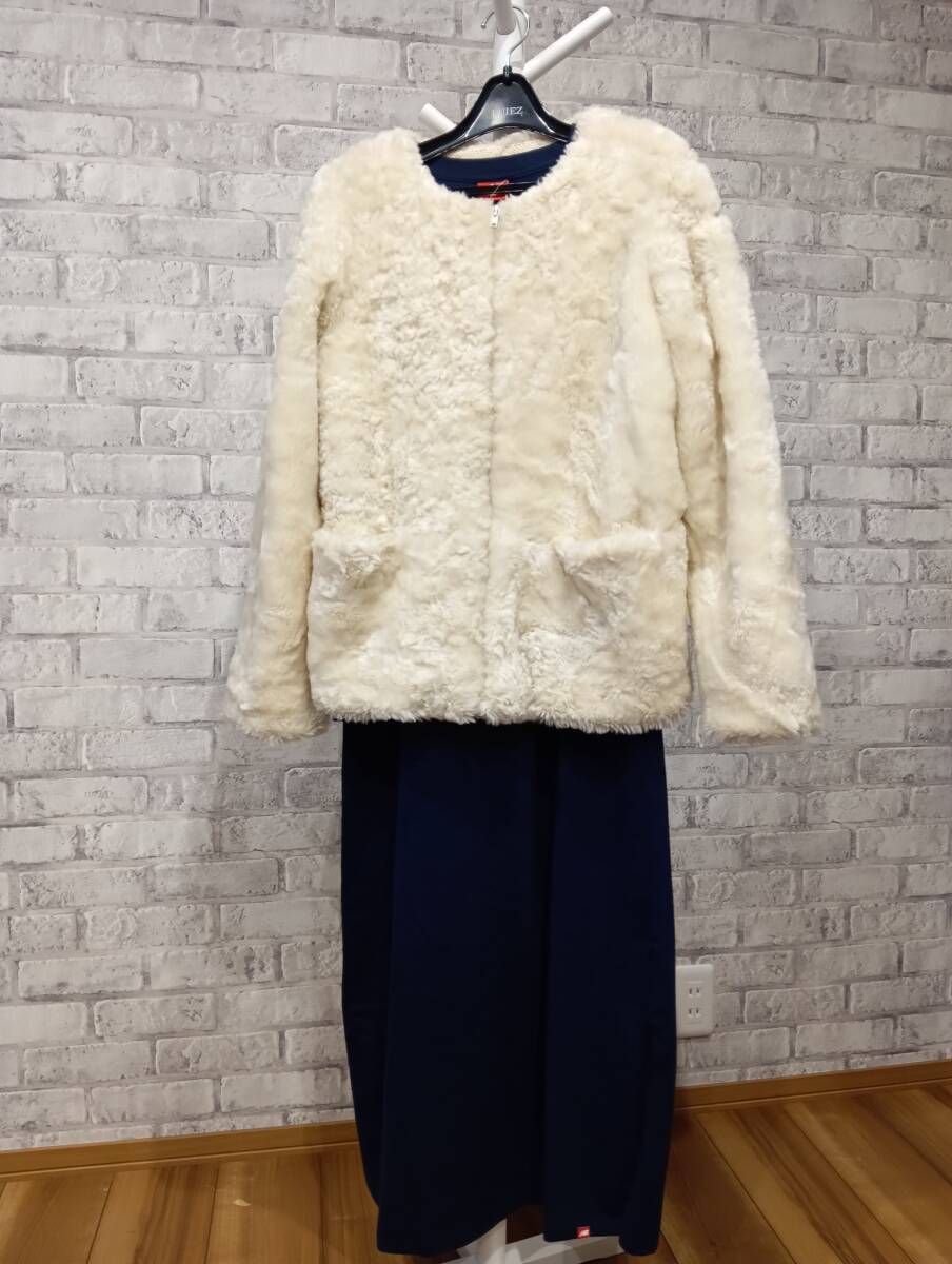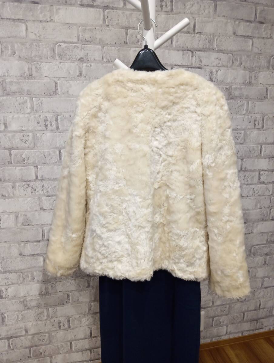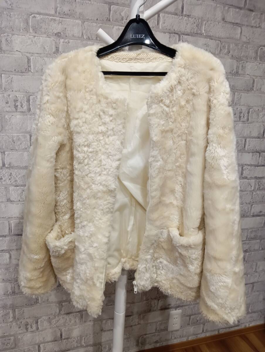 アイボリーのファーコート、ポケット付きでカジュアルなデザイン。 - 色: アイボリー - 素材: ファー - デザイン: ポケット付き、前開き - スタイル: カジュアル ご覧いただきありがとうございます。 カラー...ホワイト系 着丈...ショート ファー種類...フェイクファー/エコファー 汚れ・破れ・臭いなど...なし 着こむタイプではないので、細見です。 身幅51cm 着丈62cm、