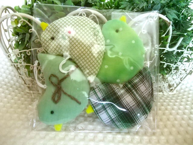 | 説明 | 送料普通郵便110円 サイズ約6センチのキュートな小鳥です☆ 4個セットです♪ 生地の素材は綿100%です。中身は綿です。 丁寧に製作致しました。 小さなかわいい小鳥のオーナメント色々な場所に飾ってくださいね♪ 他にも沢山出品しております。是非見てくださいね☆ |