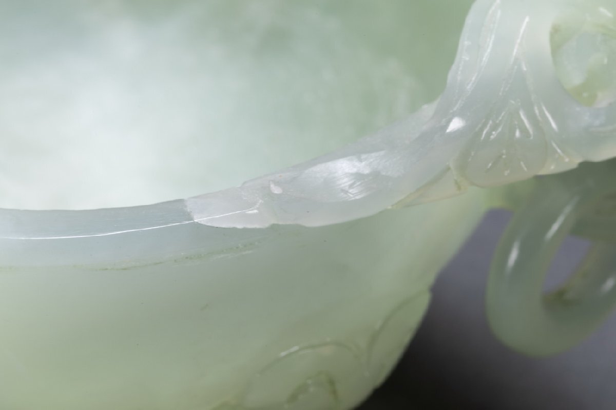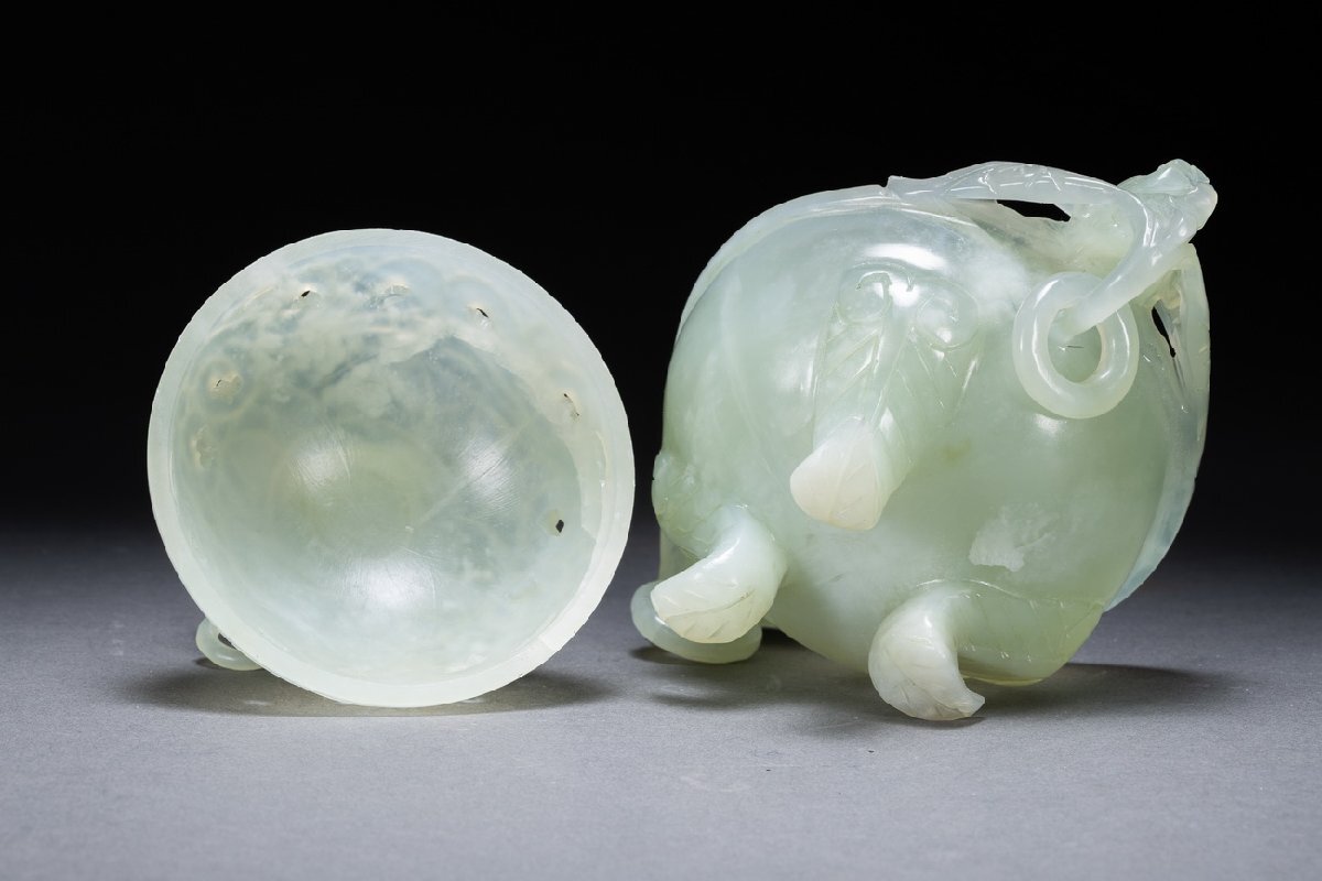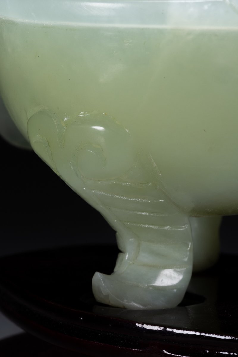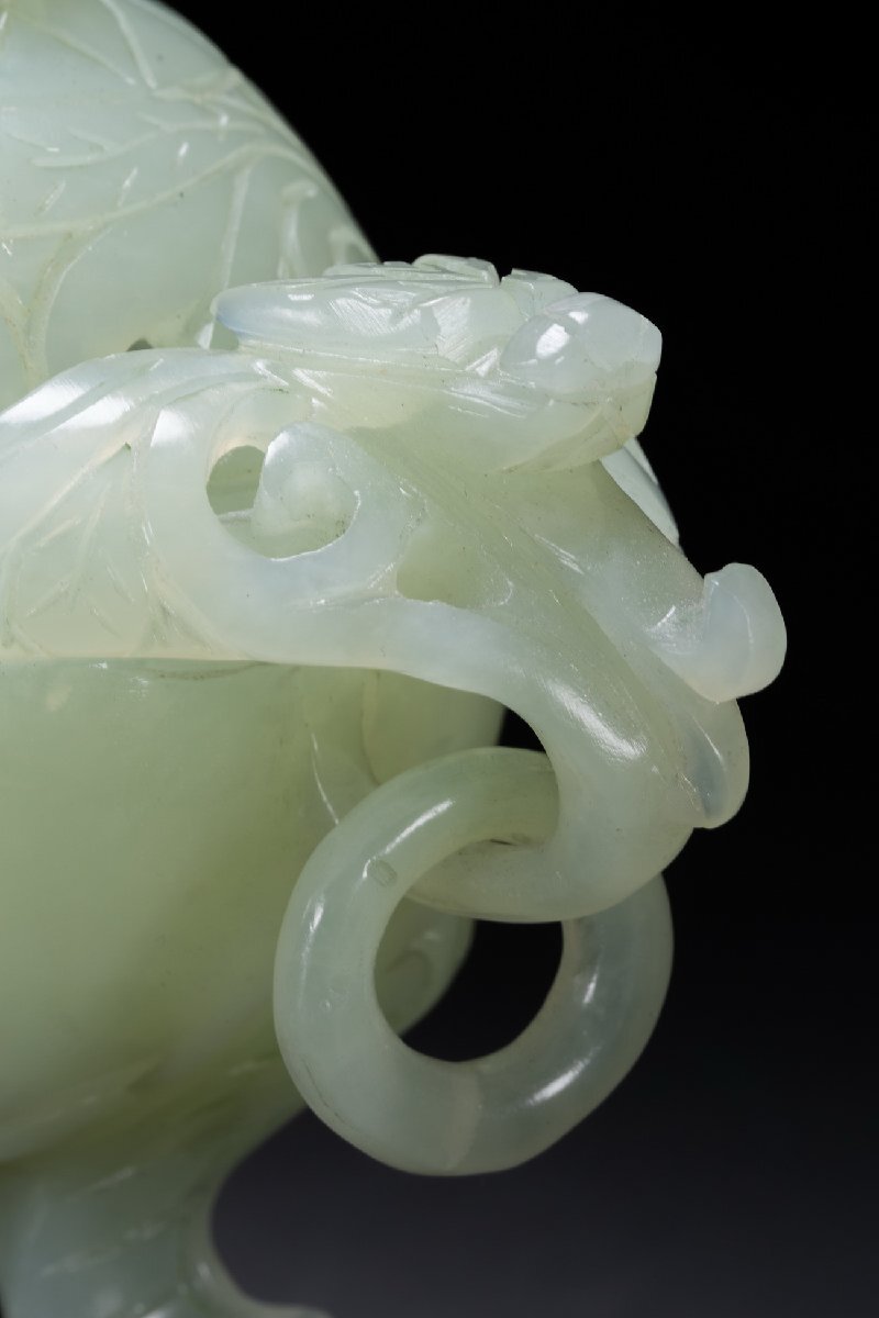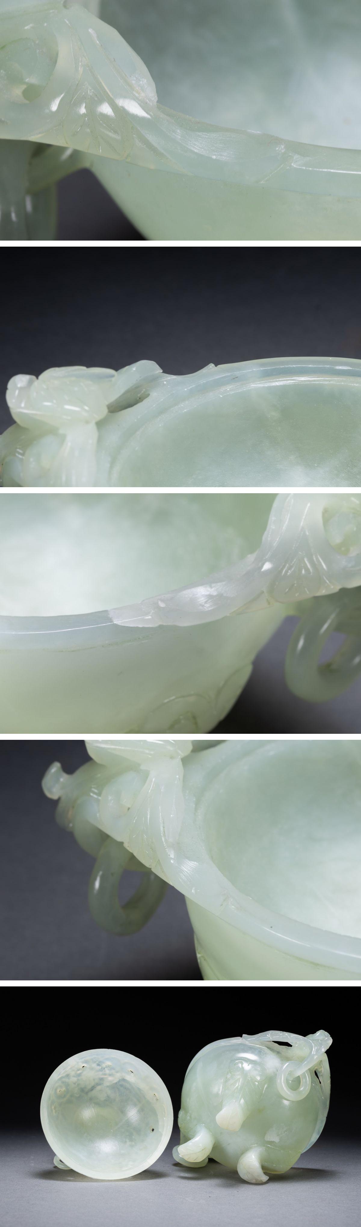 【雲錦】某有名オークション購入 時代物 天然玉石 双環耳蓋爐 台座付き 古置物 古美術 時代コレクション7L10-157S03