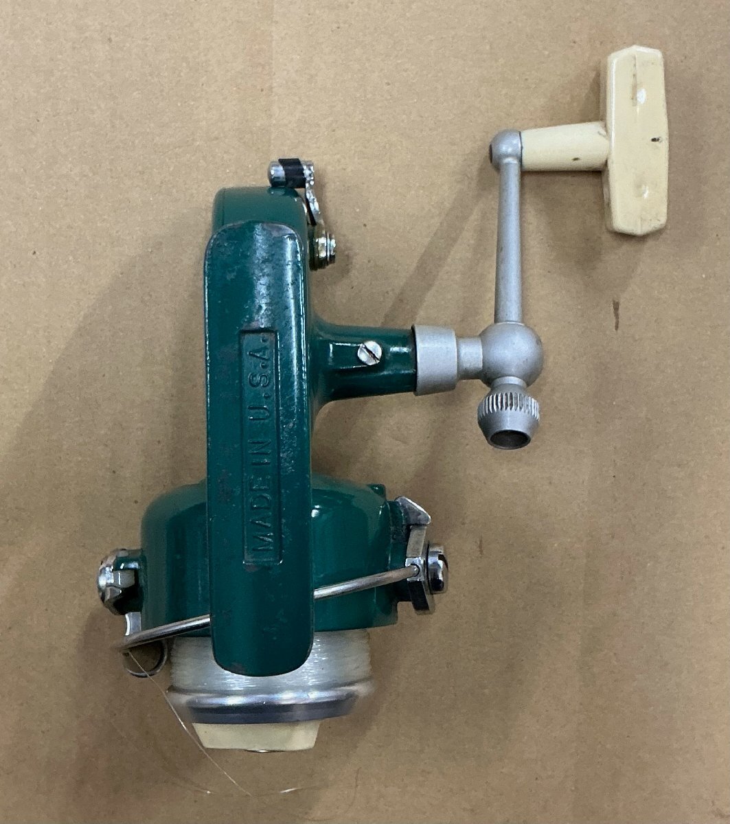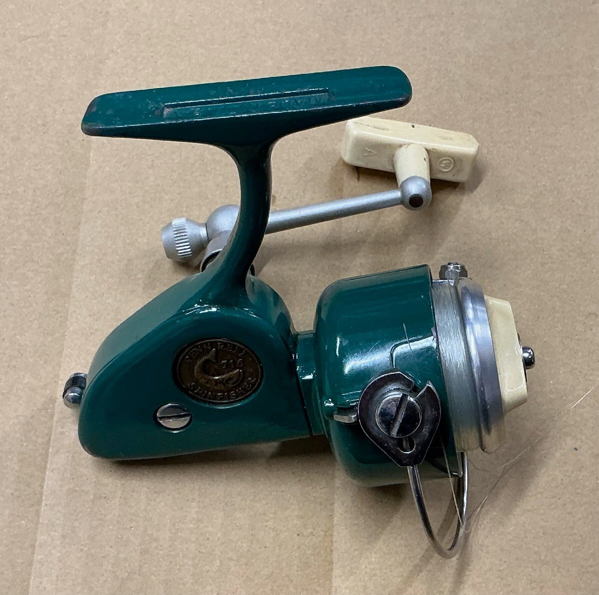 | 720シリーズよりも一回り小さい710シリーズの716です。 先の720シリーズよりも古い年代(1960年代?)のものと思われます。 トラウトやバスに最適な小型サイズ。 本製品は中古品となりますが、ベールアームの機構、ドラグ、ハンドルの回転など、問題なく使用可能です。 中古品なりの使用感、汚れ、傷、擦れなどありますが、この年代ものとしては 綺麗に保存されていると言えるでしょう。 気温が低いと、内部のグリースが固まってハンドルが重くなる場合があります。 現況は、ラスペネによるグリースアップをしておりますので、回転は滑らかですが、旧グリース除去の上、ご自分でのグリースアップをお勧めします。 パーツを無くさないように注意してください。 写真を見て判断下さい。 ノークレーム・ノーリターンでお願い致します。 更なる美品をお求めの方は、入札をご遠慮下さい。 | |||||