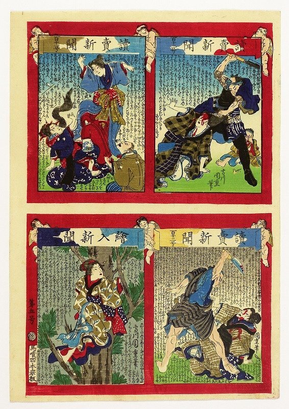 題名 読売新聞と絵入新聞 (錦絵新聞)