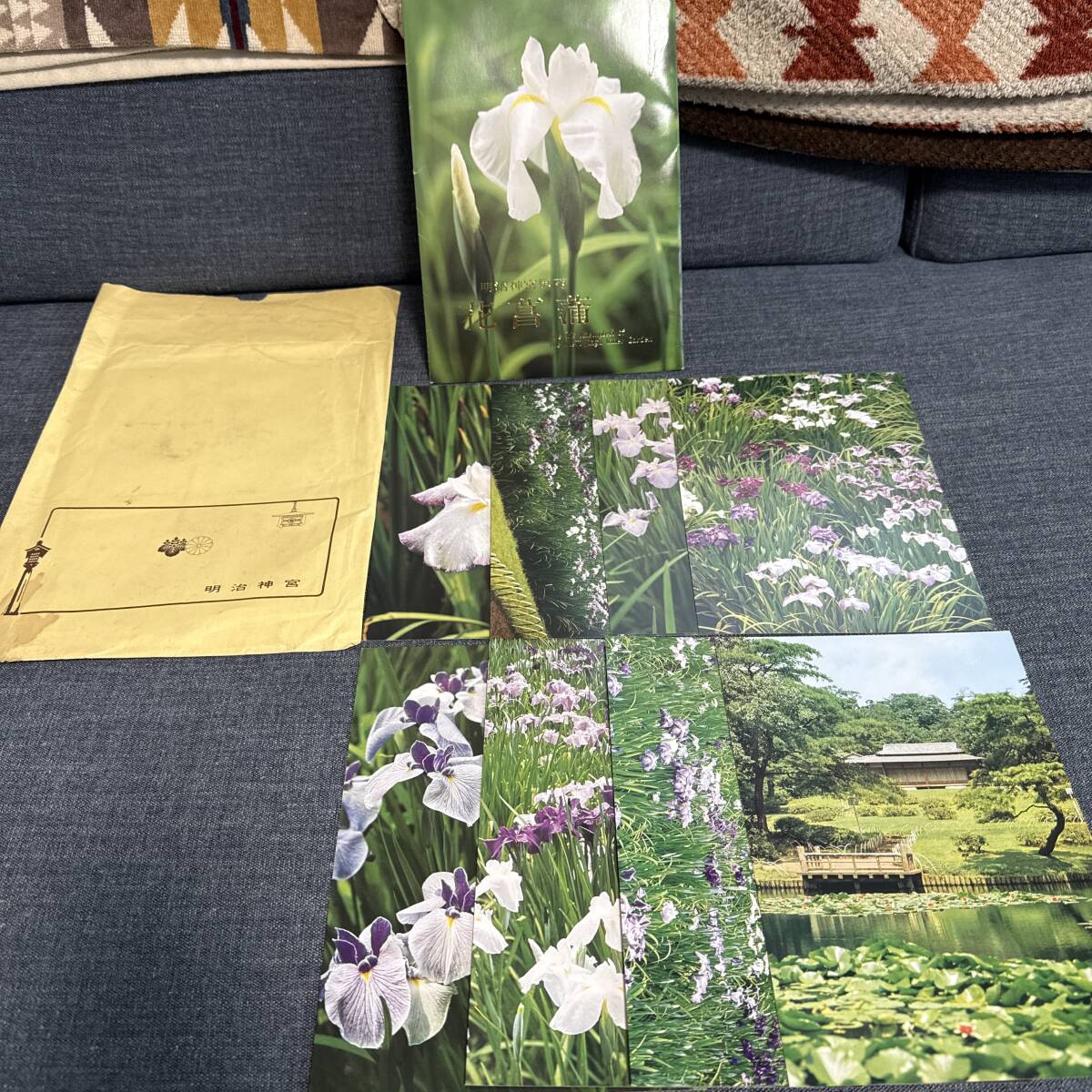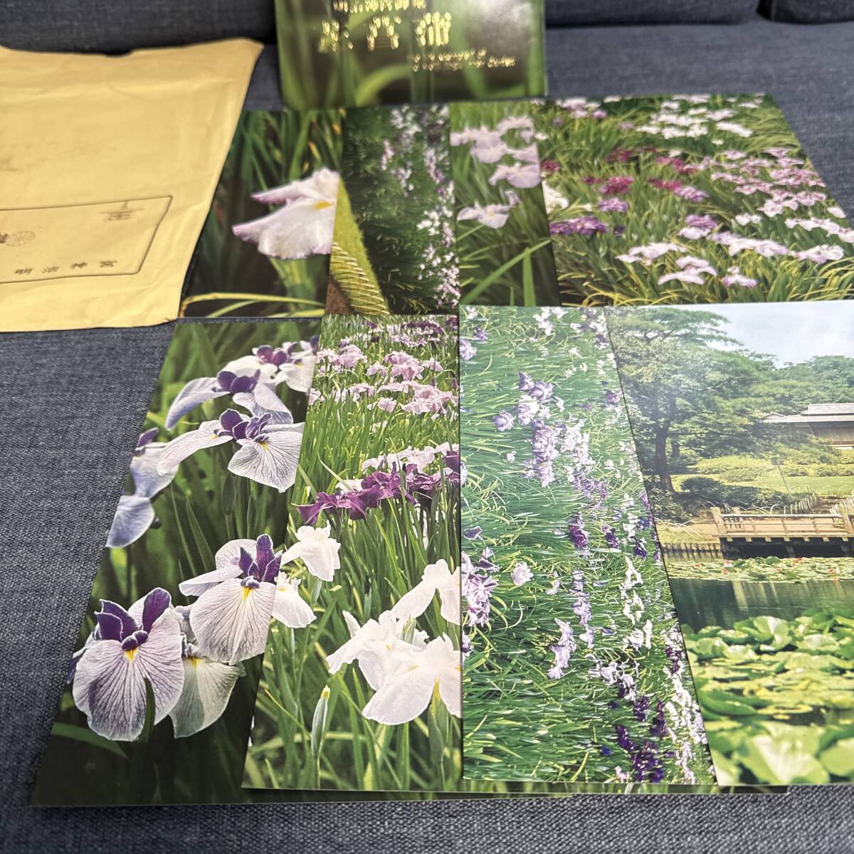 明治神宮御苑の花菖蒲の絵はがき 8枚セットです ケース付き 古いハガキなので郵便番号欄は5桁 絵ハガキとしてだけでなく、美しい花菖蒲の写真として飾ってみてはいかがでしょうか。