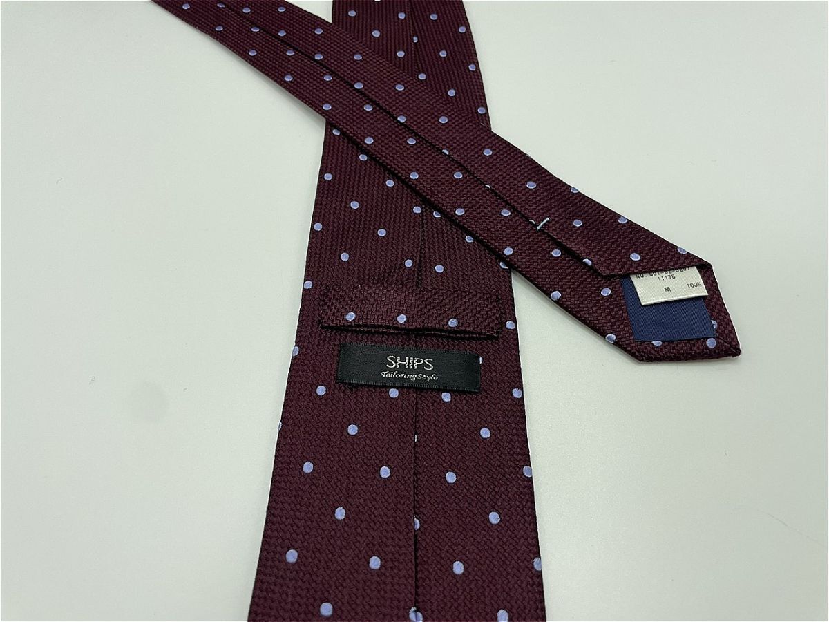 【超美品】SHIPS シップス ドット柄 ネクタイ 3本以上 送料無料 メンズ ワインレッド 1003153