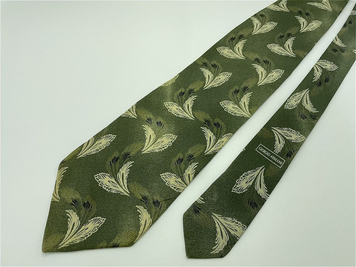 【超美品】GIORGIO ARMANI アルマーニ 花柄 ネクタイ 3本以上 送料無料 メンズ グリーン系 1003170