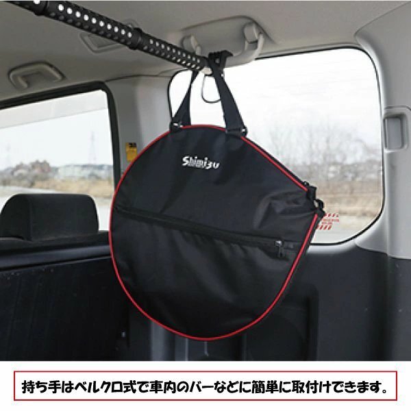 39cm径までのタモを収納できる専用ケース 網とハンドルを別々に収納できるので、 大切な鮎タモの保護のほか、様々なタモの収納に活躍します。 持ち手はベルクロ式で車内のバーなどに簡単に取り付けることができます。 車内のバーに取り付けたまま、収納や取り出しができ便利です。