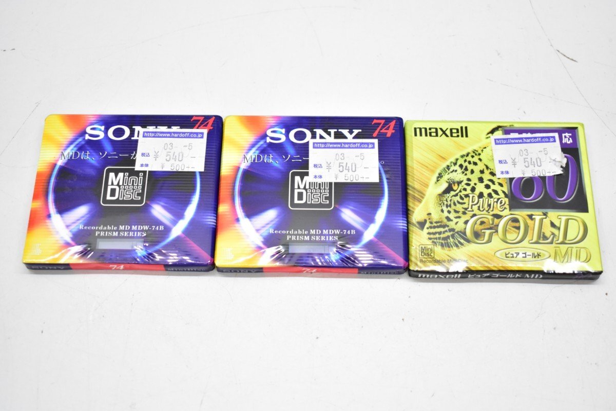 未開封 MD ディスク3枚まとめて SONY 74分×2 Maxell 80分×1 [ソニー][マクセル][MiniDisc][ミニディスク][録音用][記録媒体]
