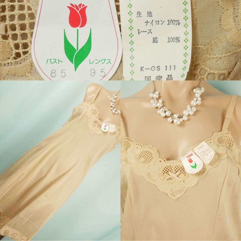 6347 レトロ花柄レース スリップ M85-95 ベージュ