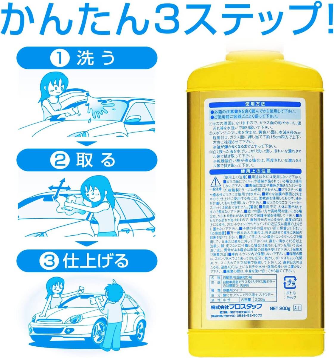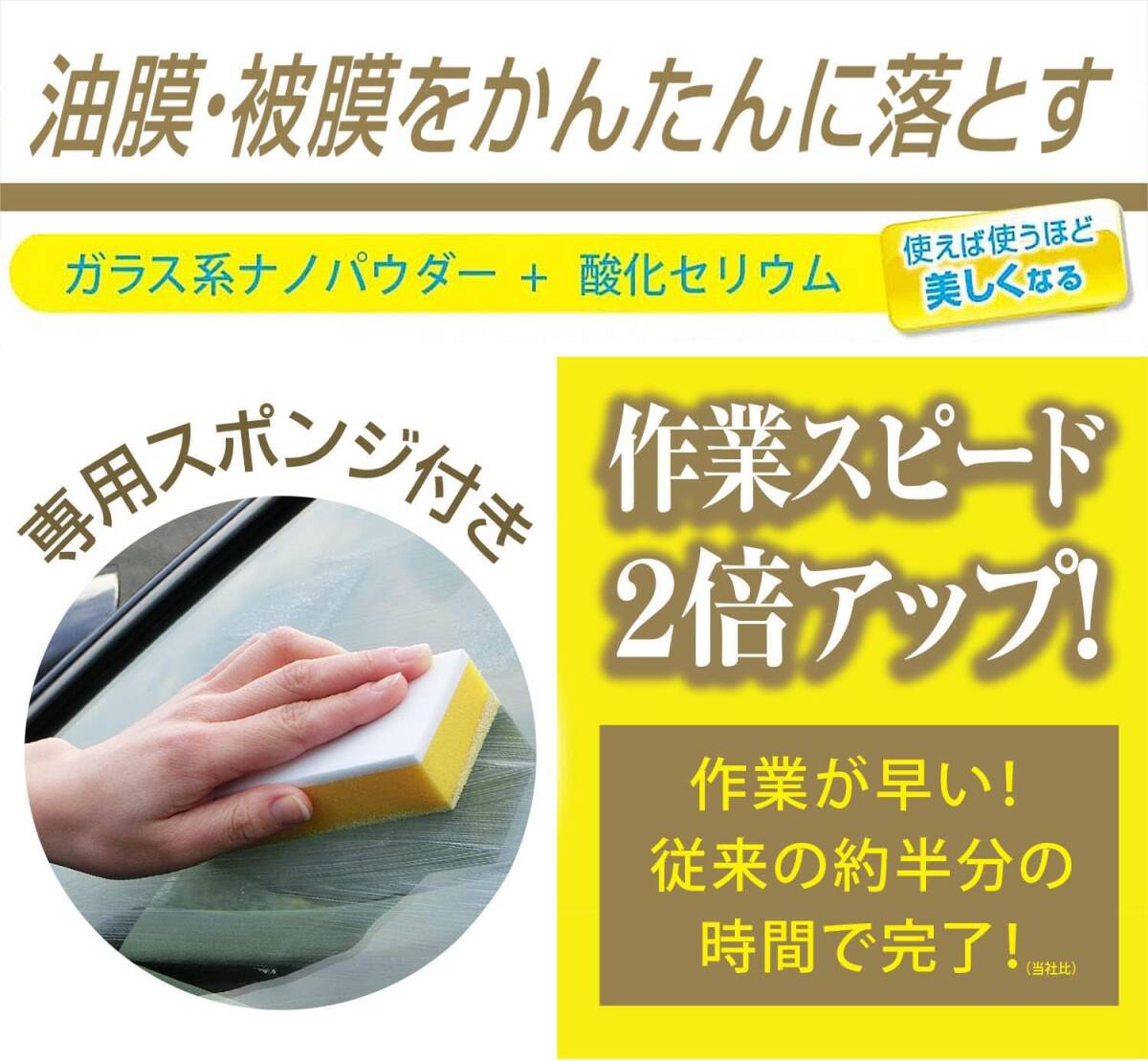 付属品:専用スポンジ 素早い「とれあじ」を本当に実感していただけるガラス専用クリーナー 窓ガラスのコーティング施工の前処理にも最適です。 がんこな油膜・被膜・ガラスコートを従来品の約2倍のスピードで除去 製品サイズ :高さ:171mm 幅:69mm 奥行:64mm 原産国:日本 内容量 :200g 終わり」までが格段に早くなりました。さらに、ガラス表面の目に見えない微細なキズを取り除く事で透明感が増し、使えば使うほどガラスが美しくなっていきます。 |