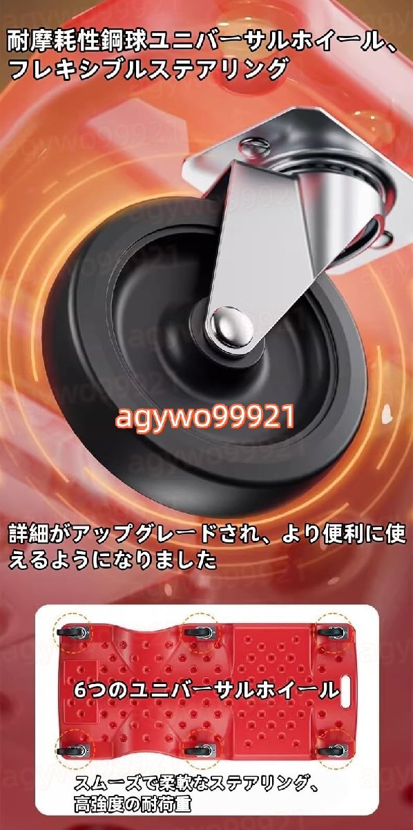 車修理用寝台ボード、耐荷重 200KG の 40 インチ自動車用クリーパー、自動車修理ベンチ、デュアルツールトレイ、6キャスター、LEDライト、スペアホイール、マグネット式ツールボックス付き (レッド)