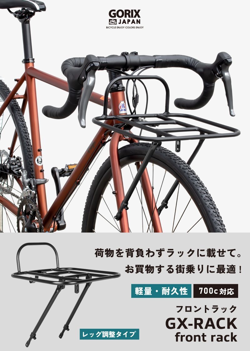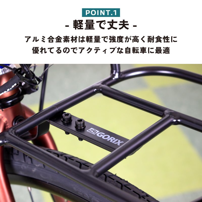 スポーツ自転車でのツーリングやお買物が多い街乗りにぴったりのフロントキャリア。 | |