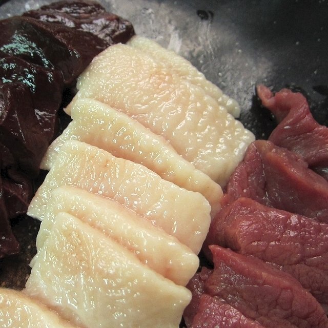 上赤肉・畝(タテガミ)・生レバー各50g (モンゴル産)