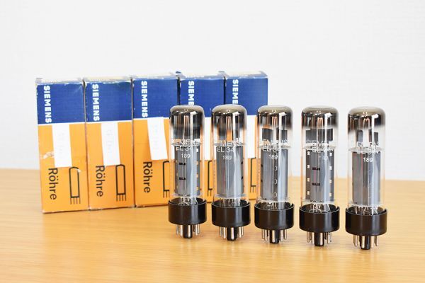 SIEMENS EL34 シーメンス / 真空管 5本 ■ 付属品 箱 ■ 動作 TV-7D/Uにて試験済みです。 55、56、57、58、59(破棄値30) ■ 外装 少しスレ傷や印字消えがあります。 | ||||||||||||||||||||