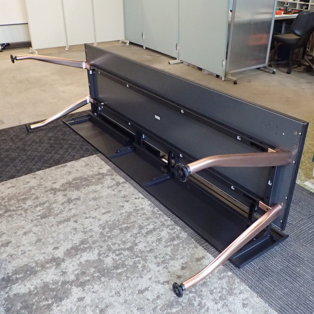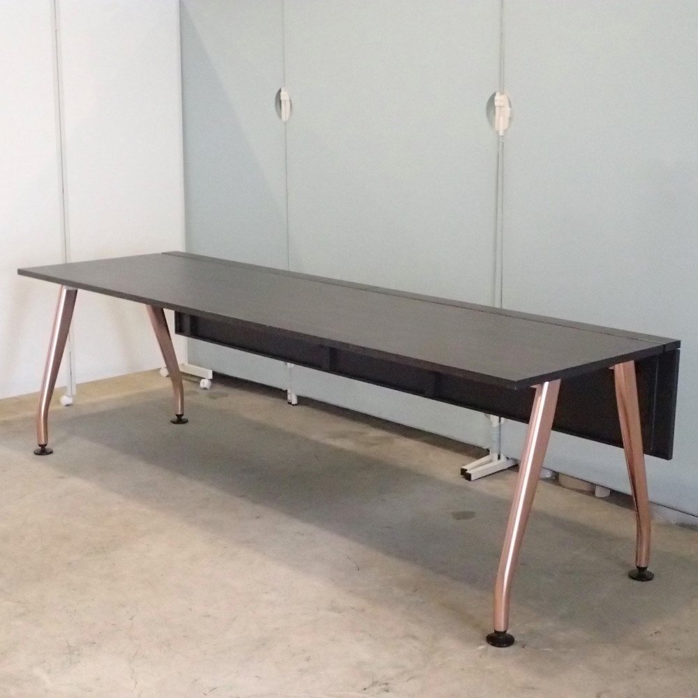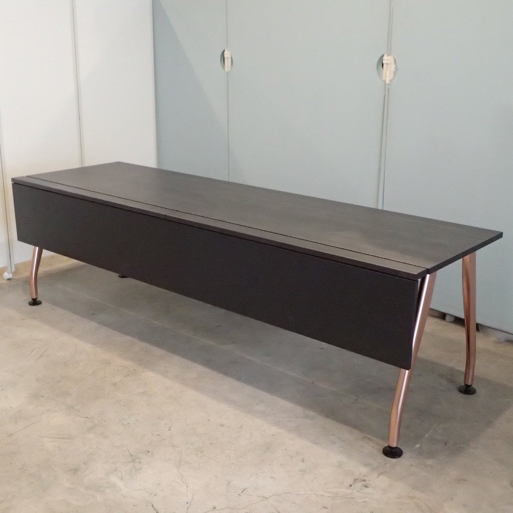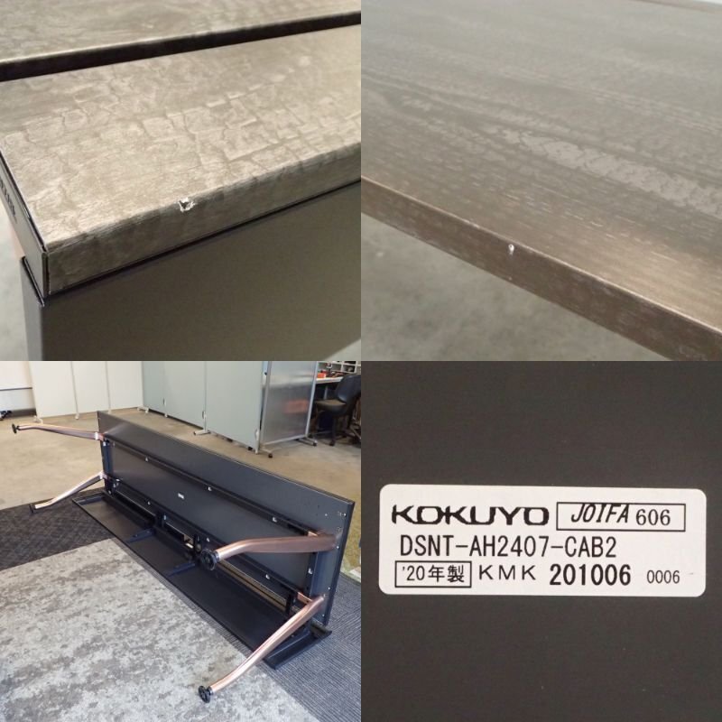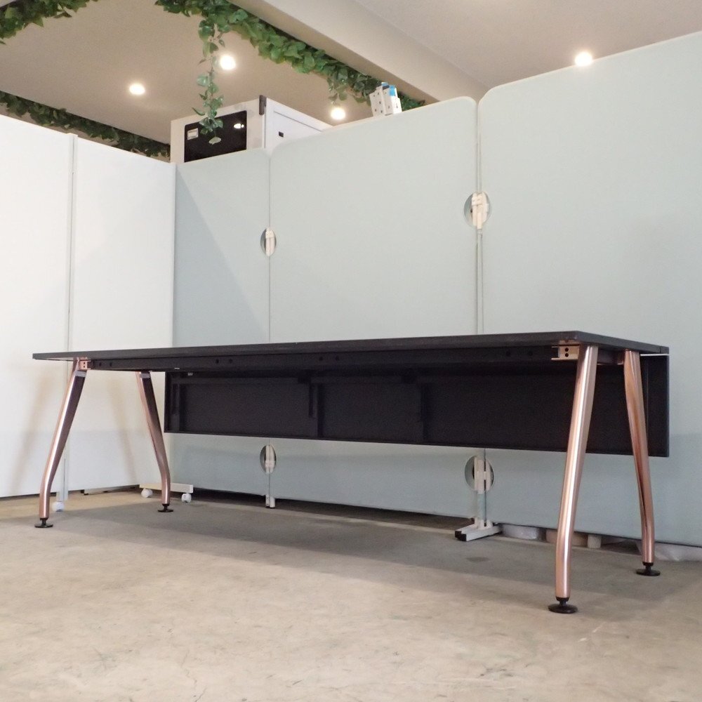 2020年製のコクヨのセンティアシリーズのミーティングテーブルが入荷致しました。お色味はブラックです。 重厚感あるダークウッド天板とブロンズ調デザイン脚が印象的な大型ミーティングテーブルは、会議室・オープンスペース・プロジェクトルームなど、人が集まるシーンに大活躍!高耐久な天板、安定感のある4本脚構造で長時間の使用にも安心です。 ワークテーブル/会議テーブルとして幅広くお使いいただける人気モデル。お写真にあるようなキズはありますが、全体的にキレイな状態のテーブルです。オフィスのグレードアップにぜひ。 ※こちらの商品はW2400mm以上あるため、エレベーター等の搬入経路をご確認下さいますようお願いいたします。 ※写真で掲載の商品そのものが届くとは限りません。写真で掲載の商品そのものが届くとは限りません。複数入荷した中の1点を掲載しております。 |